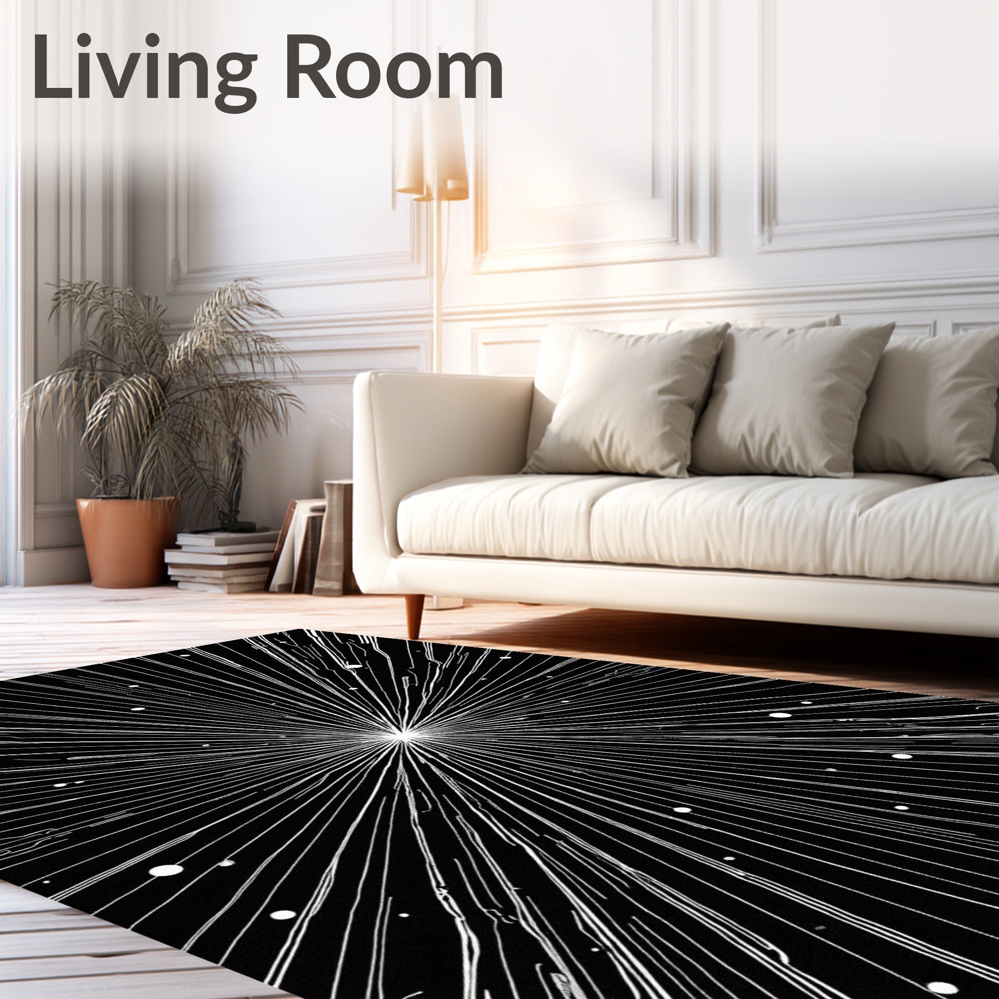 Flatwoven High Traffic Area Rug, Abstract Constellation Burst Design Contemporary Artwork, Non Slip, Stain Resistant, Washable Area Rugs for Living Room, Bedroom (Black) Overview: