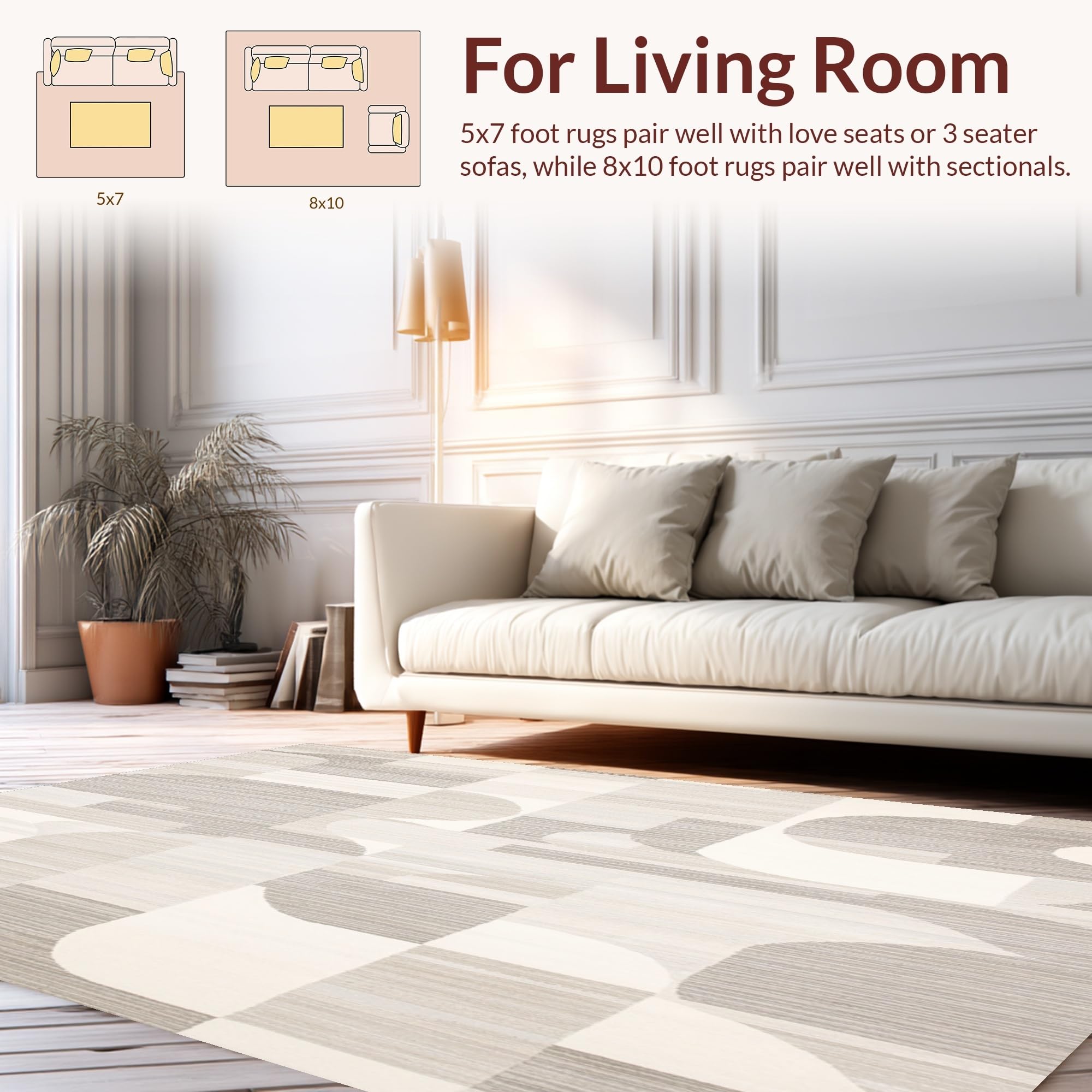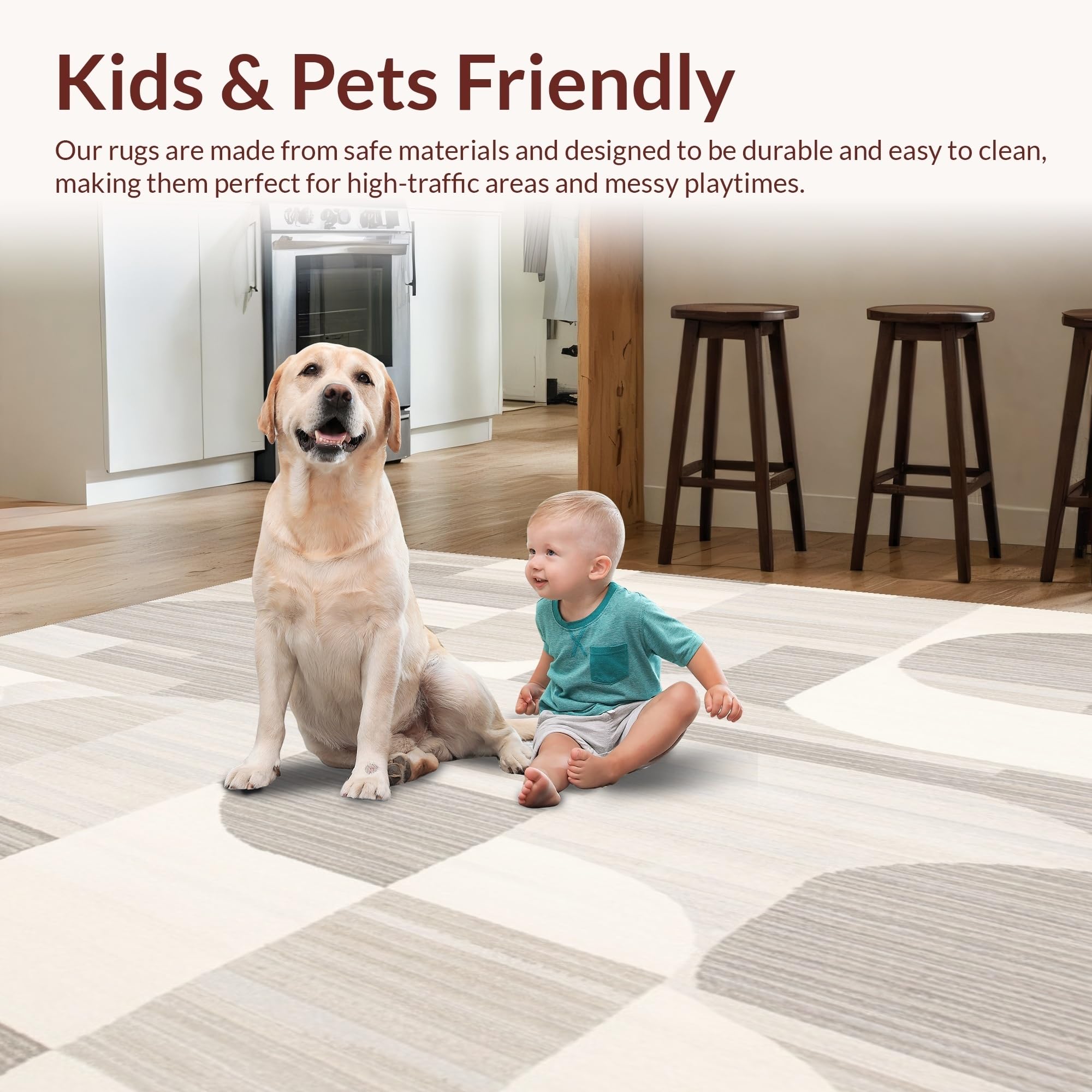 Ultra Soft Area Rug, Non Slip, Stain Resistant, Washable Area Rugs for Living Room, Bedroom, Abstract Cream Geometric(Beige) Overview: