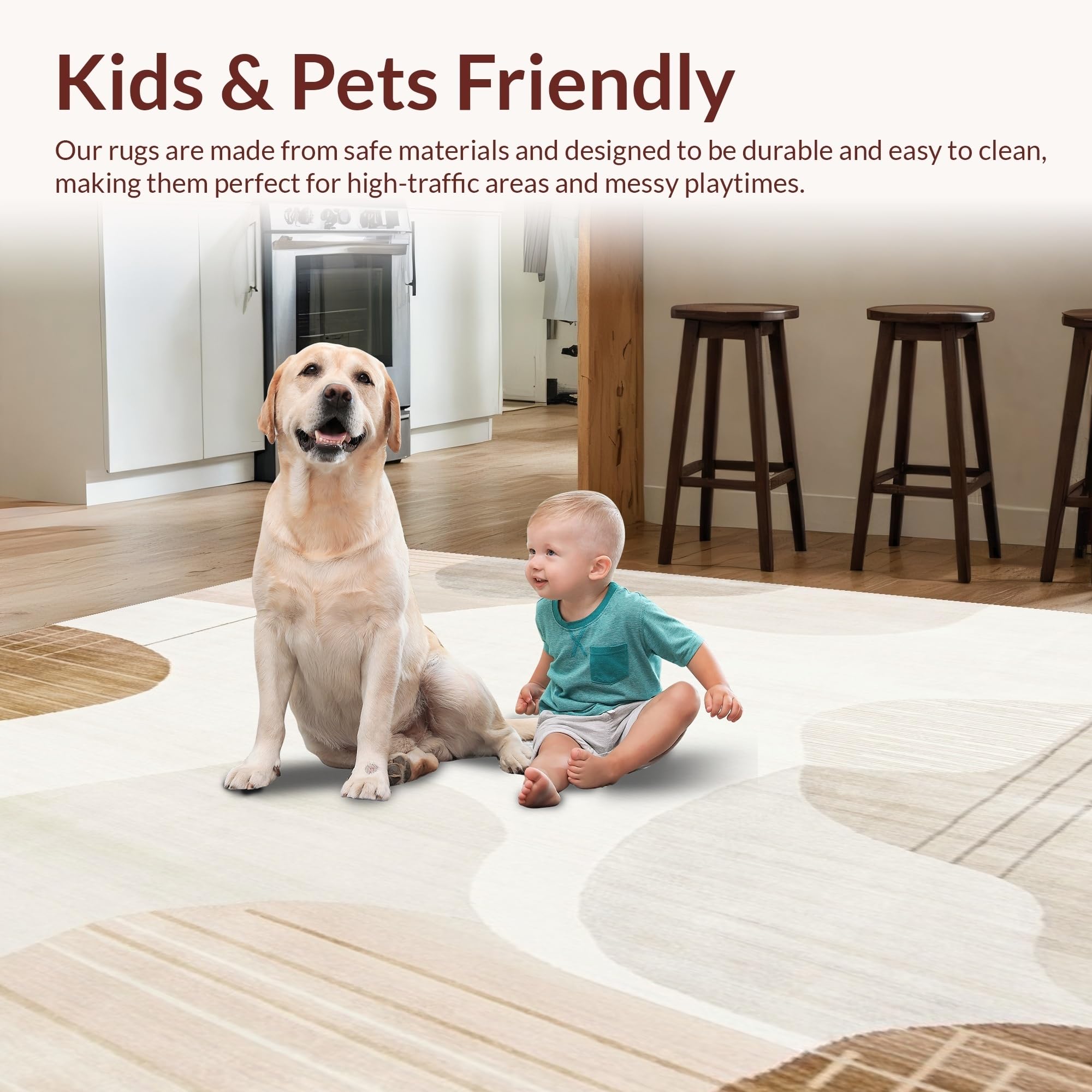 Ultra Soft Area Rug, Non Slip, Stain Resistant, Washable Area Rugs for Living Room, Bedroom, Abstract Creamy Beige Runner for Home Absorbent Kitchen Floor(Beige) Overview: