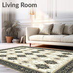 Ultra Soft Area Rug, Non Slip, Stain Resistant, Washable Area Rugs for Living Room, Bedroom, Abstract Cross Design Area with Beige and Charcoal(Beige) Overview: