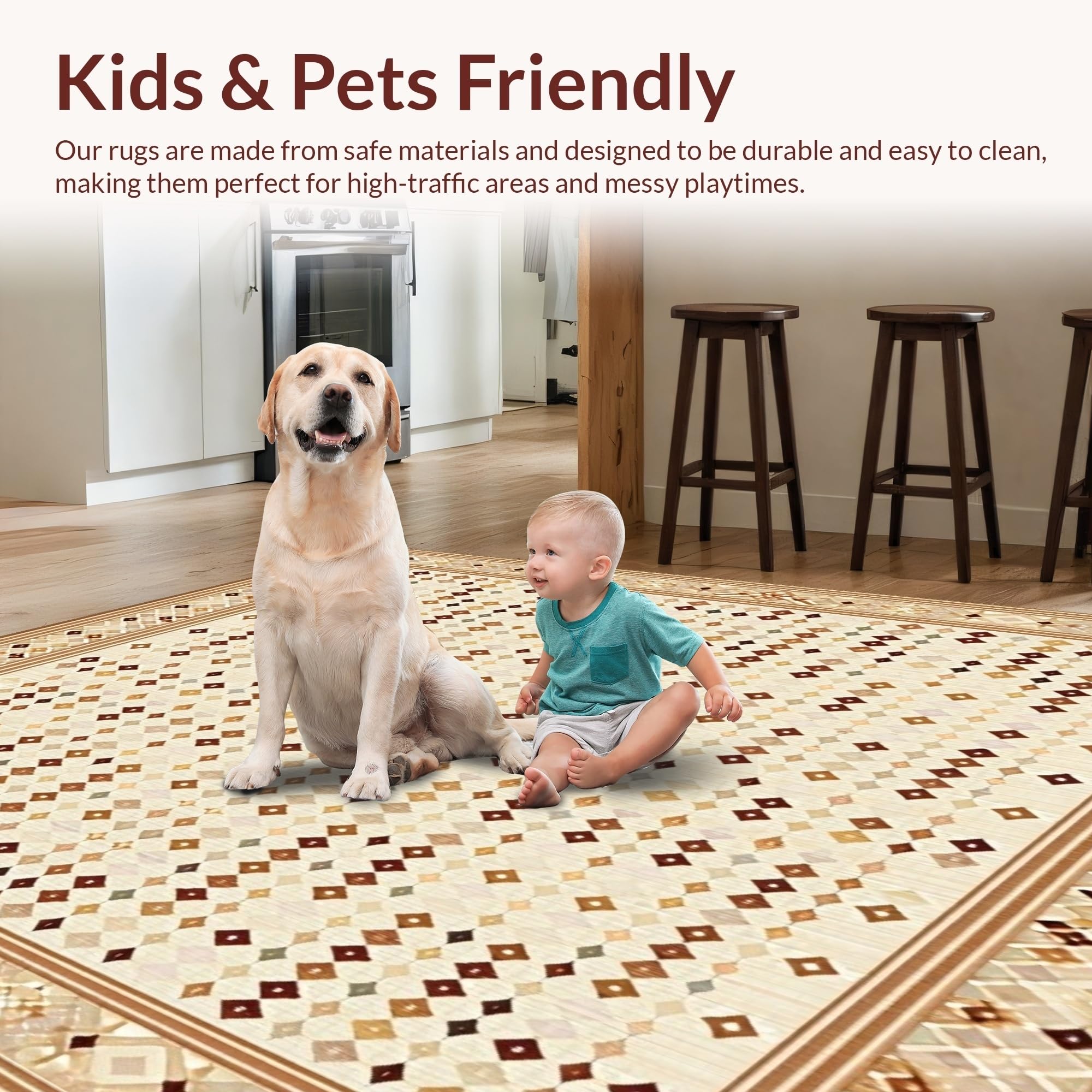 Ultra Soft Area Rug, Non Slip, Stain Resistant, Washable Area Rugs for Living Room, Bedroom, Abstract Diamond Harmony Area Rug with Contemporary Trellis Geometry(Beige) Overview: