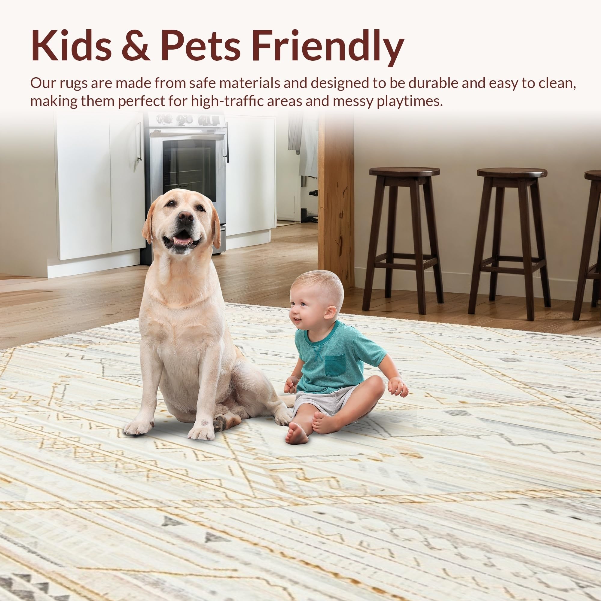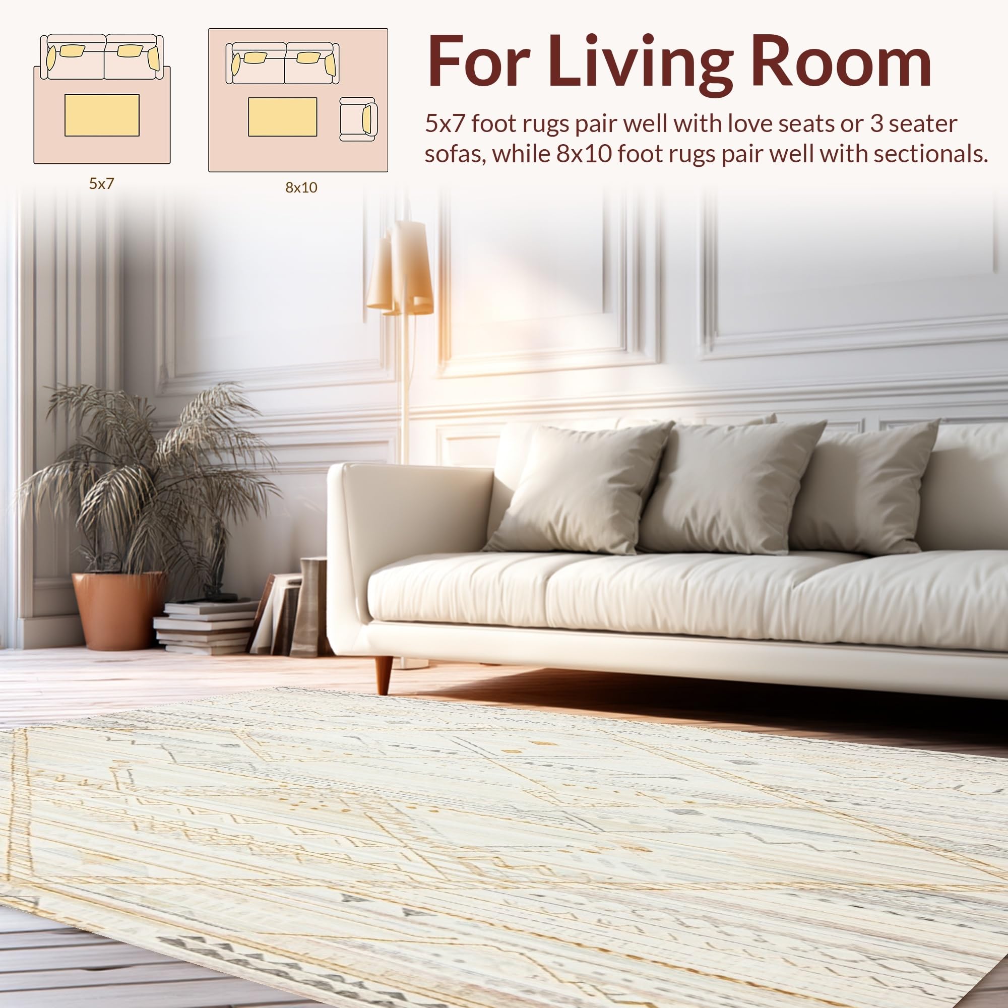 Ultra Soft Area Rug, Non Slip, Stain Resistant, Washable Area Rugs for Living Room, Bedroom, Abstract Diamond Ivory Beige Area with Subtle Geometric Shapes(Beige) Overview: