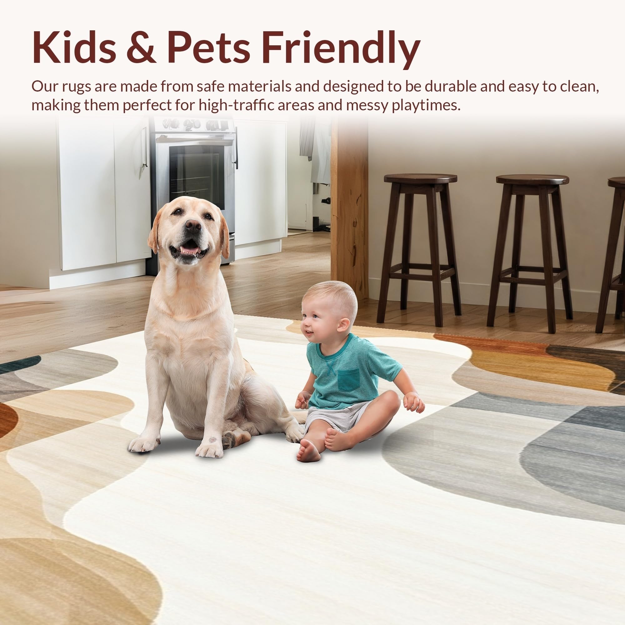 Ultra Soft Area Rug, Non Slip, Stain Resistant, Washable Area Rugs for Living Room, Bedroom, Abstract Earth Tone Area with Gradient Texture(Beige) Overview: