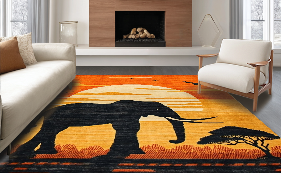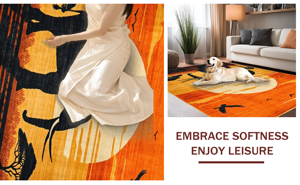 Ultra Soft Area Rug, Non Slip, Stain Resistant, Washable Area Rugs for Living Room, Bedroom, Abstract Earthy Sunset Imagery(Orange) Overview: