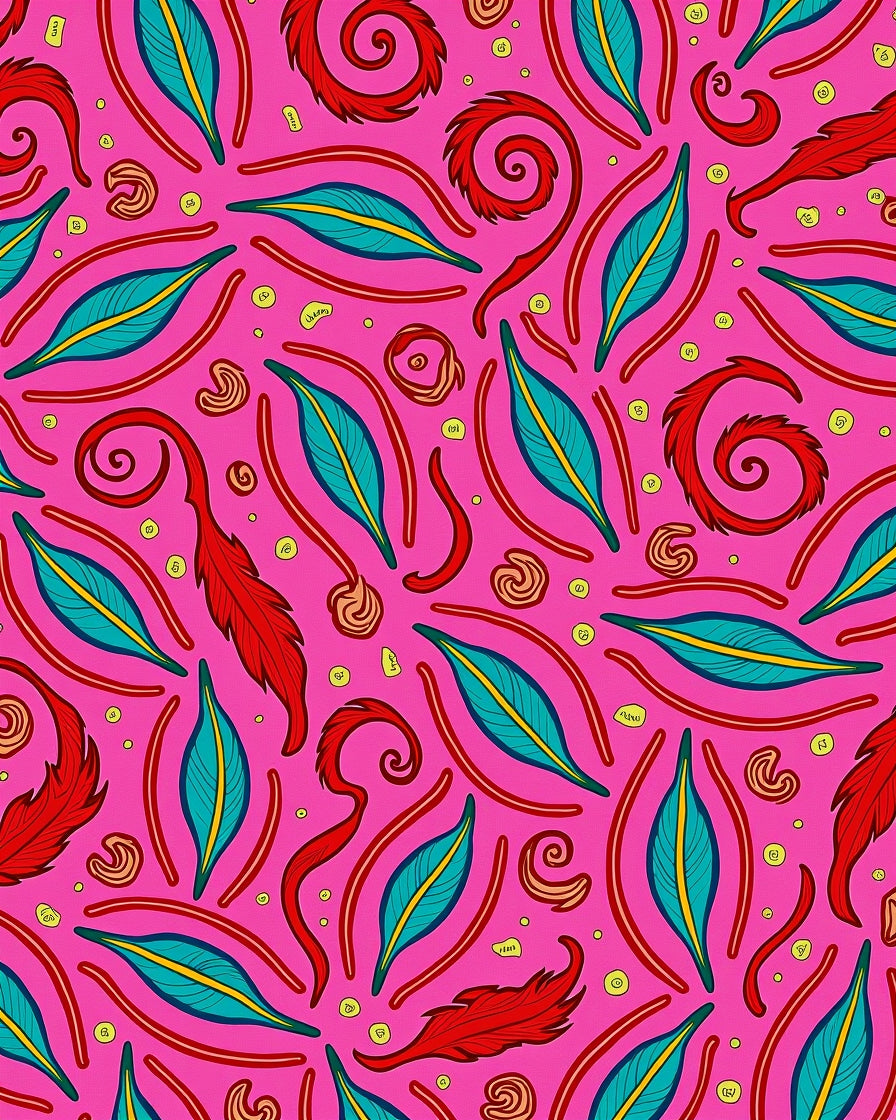Abstract Feathered Swirl with Lively Festive Accents(Pink)