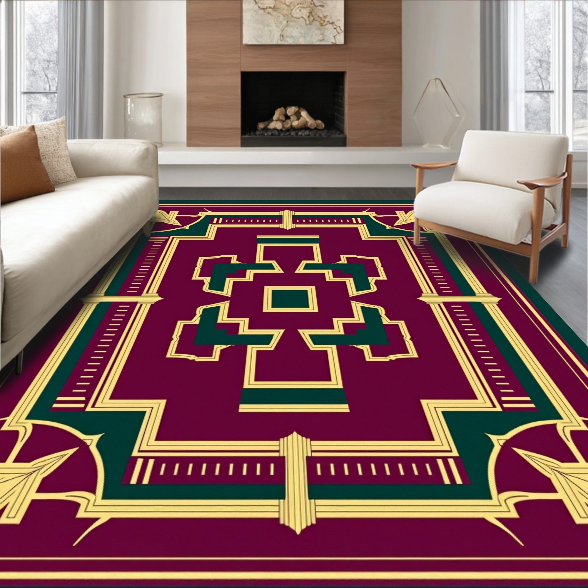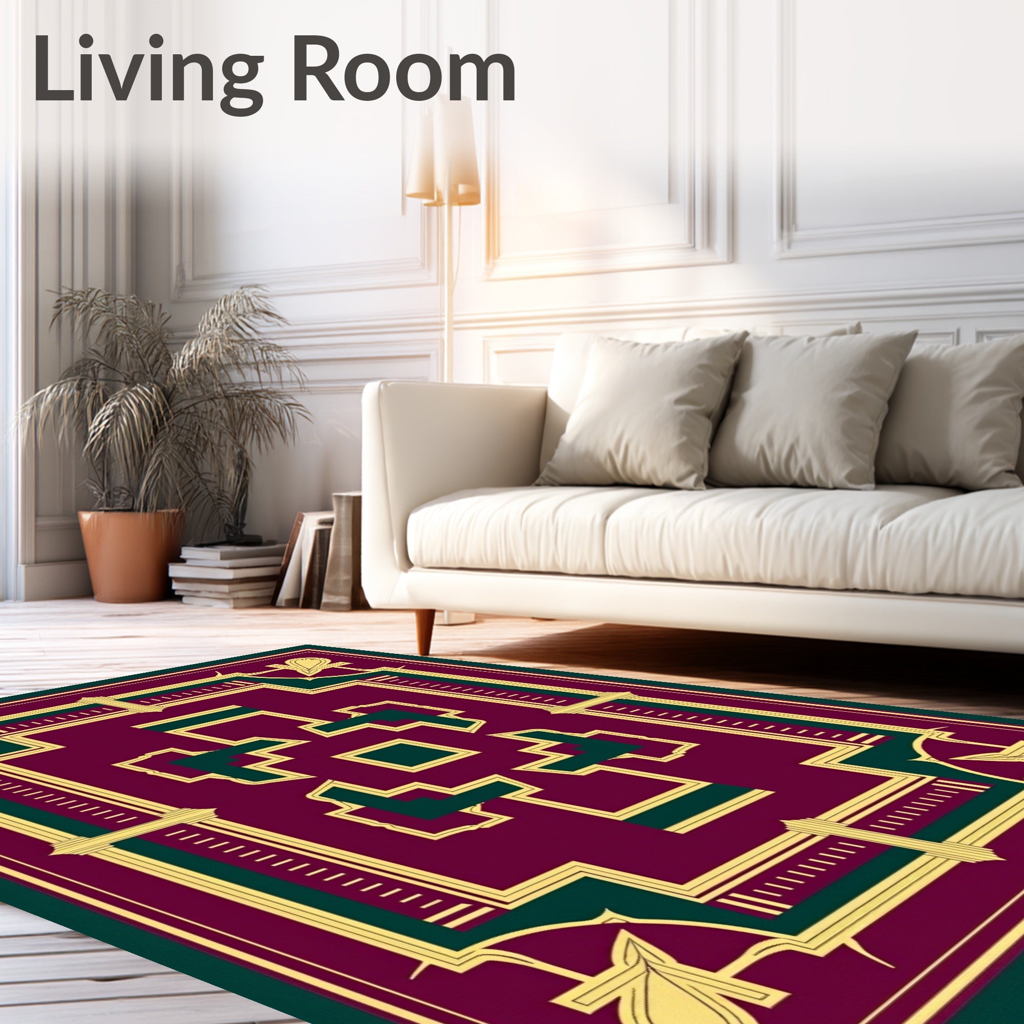 Flatwoven High Traffic Area Rug, Abstract Festive Maze with Art Inspired Holiday Shapes, Non Slip, Stain Resistant, Washable Area Rugs for Living Room, Bedroom (Maroon) Overview: