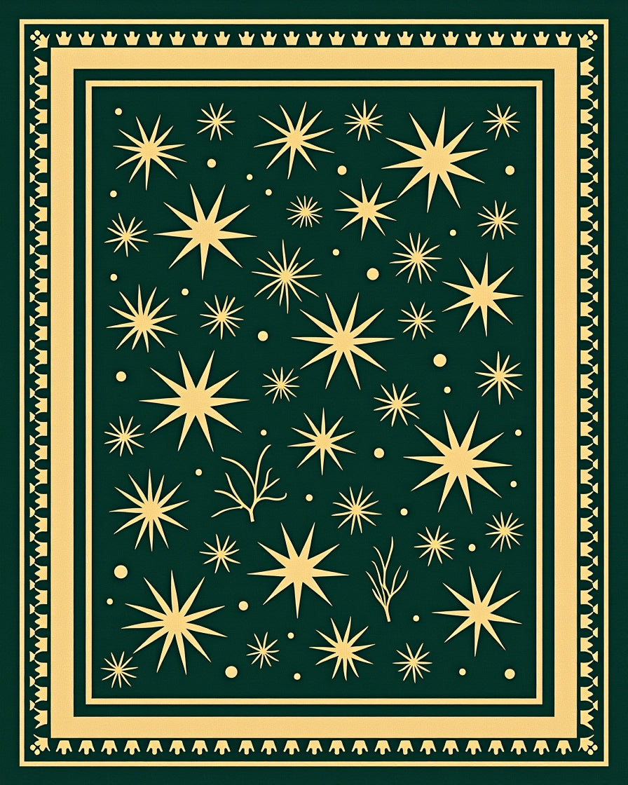 Abstract Fir Branches and Starburst Mosaic with Festive Detailing(Green)