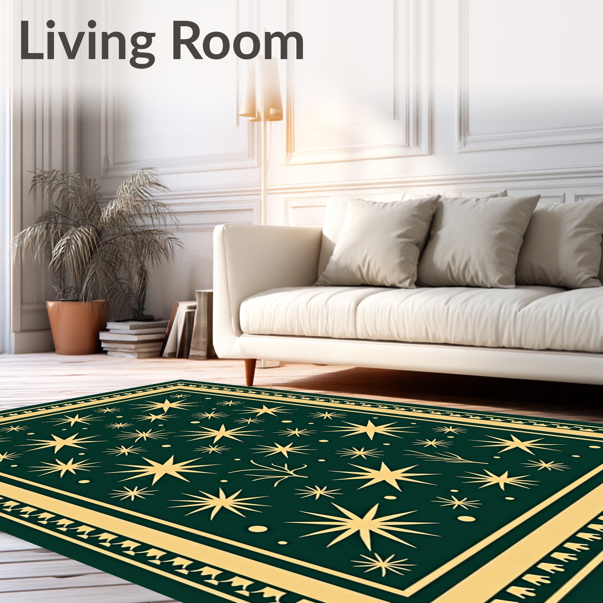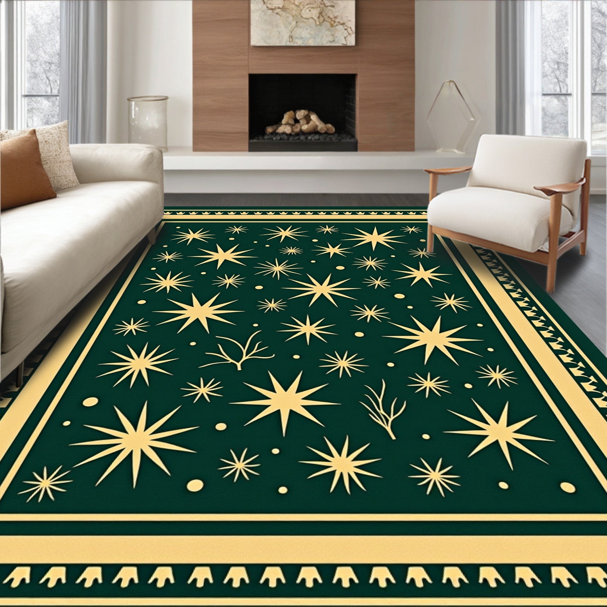 Ultra Soft Area Rug, Non Slip, Stain Resistant, Washable Area Rugs for Living Room, Bedroom, Abstract Fir Branches and Starburst Mosaic with Festive Detailing(Green) Overview: