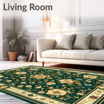 Flatwoven High Traffic Area Rug, Abstract Floral Beige, Non Slip, Stain Resistant, Washable Area Rugs for Living Room, Bedroom (Green) Overview: