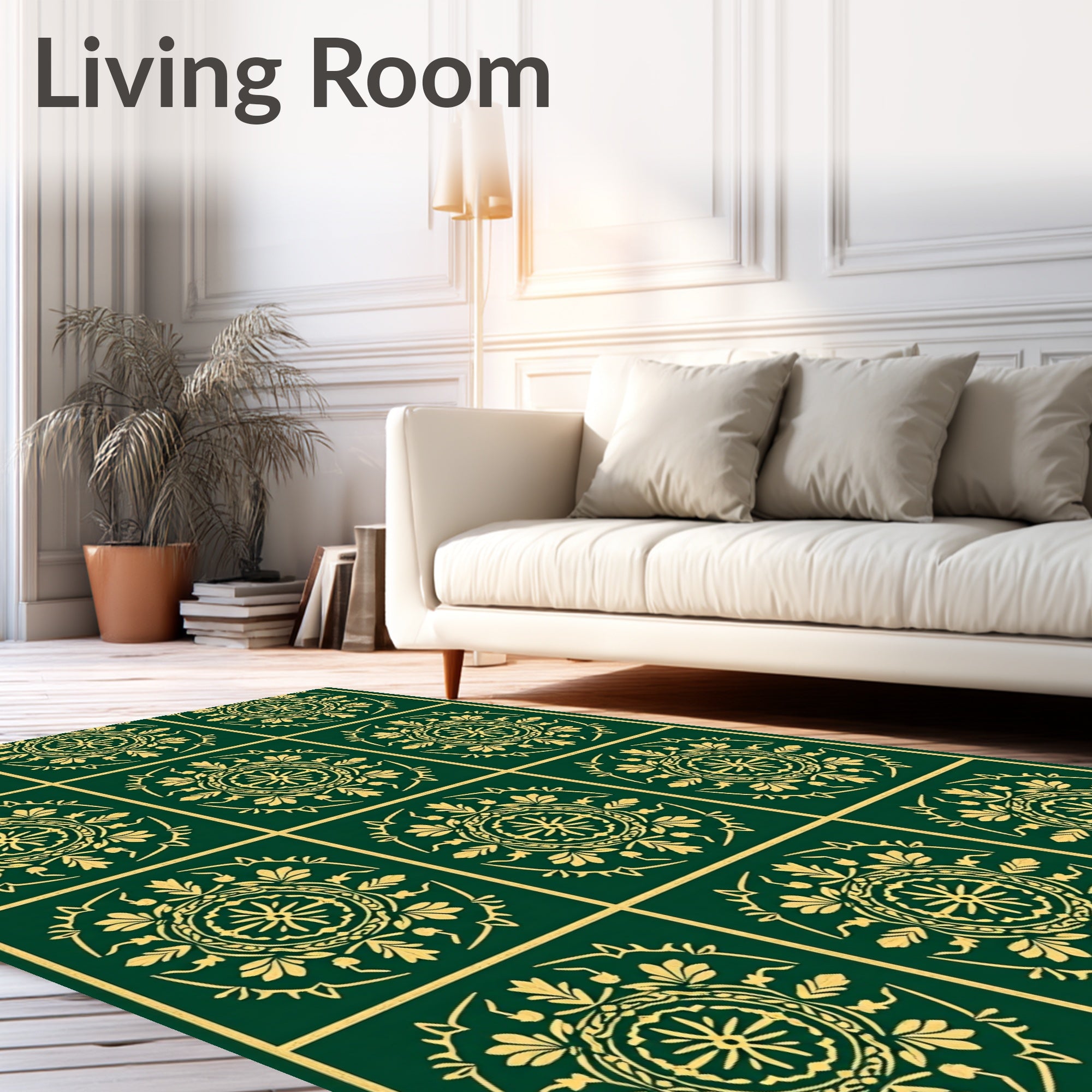 Ultra Soft Area Rug, Non Slip, Stain Resistant, Washable Area Rugs for Living Room, Bedroom, Abstract Floral Lattice with Interlocking Snowflake and Leaf(Green) Overview: