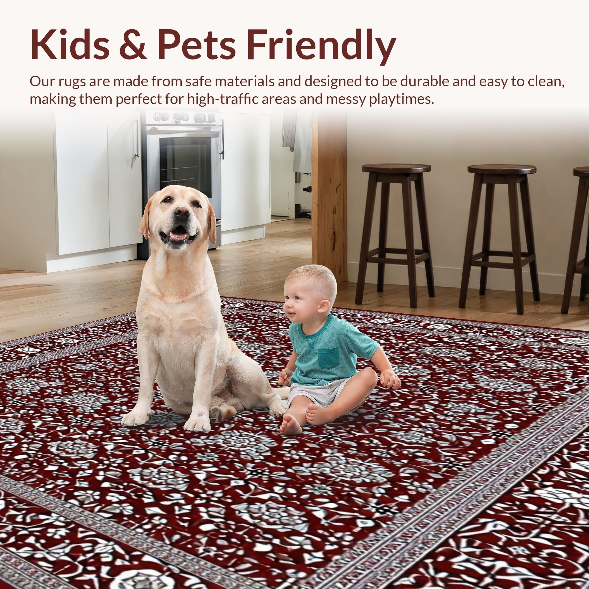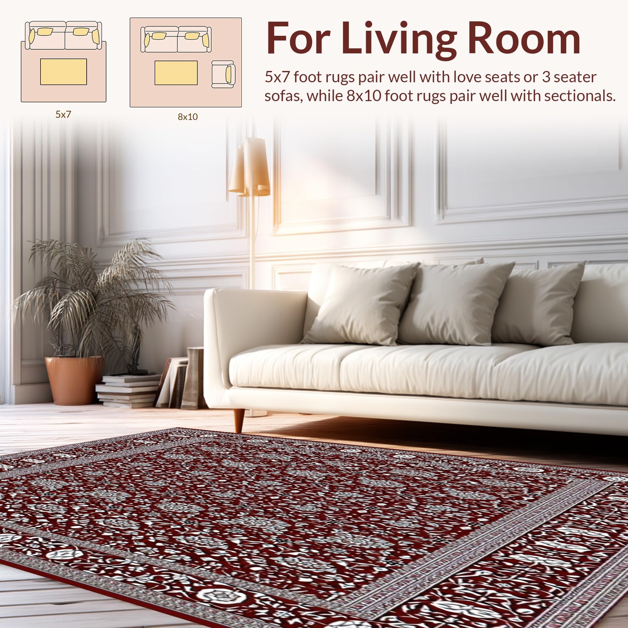 Ultra Soft Area Rug, Non Slip, Stain Resistant, Washable Area Rugs for Living Room, Bedroom, Abstract Floral Runner for(Red) Overview: