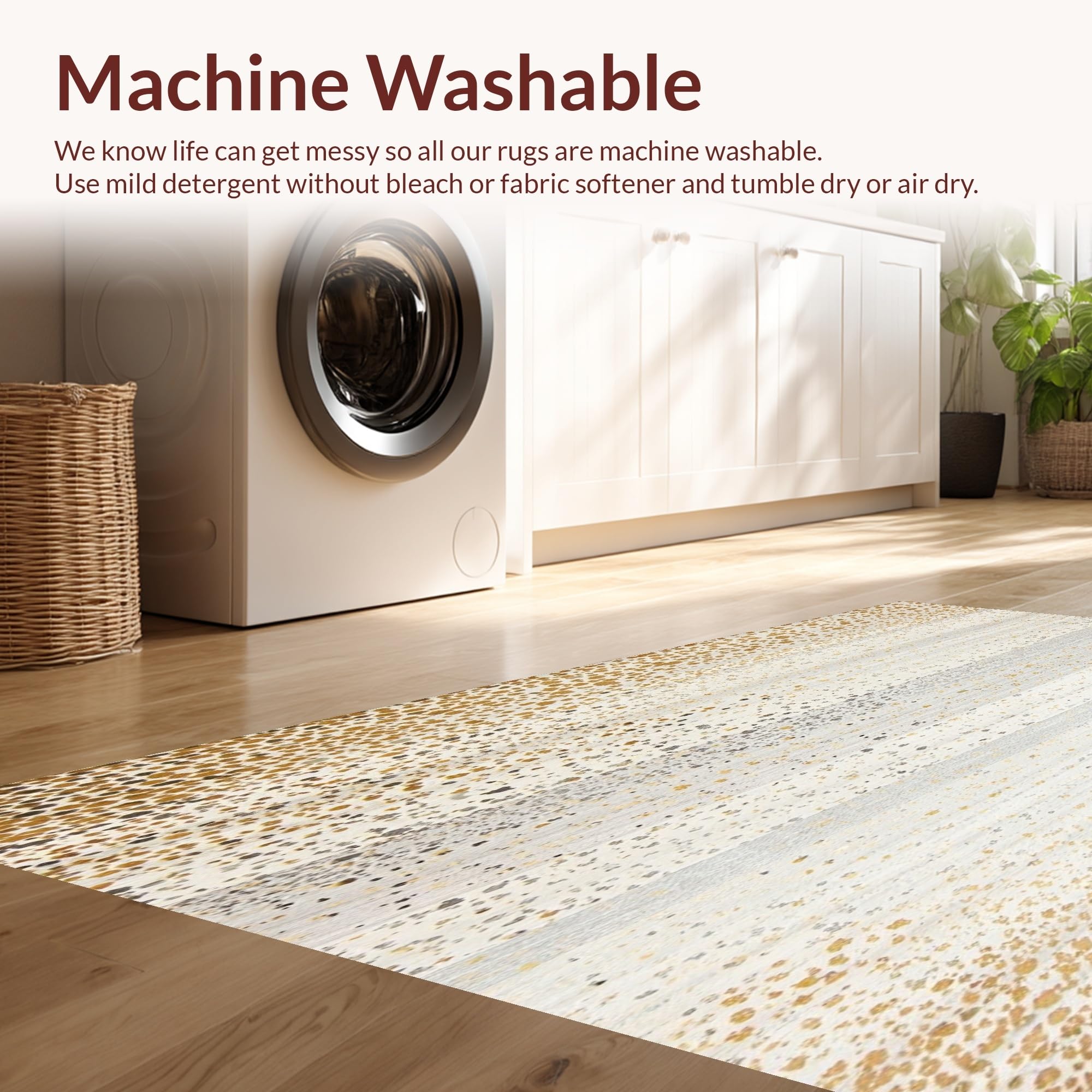 - Machine Washable: Our rugs can be easily thrown in the wash machine.