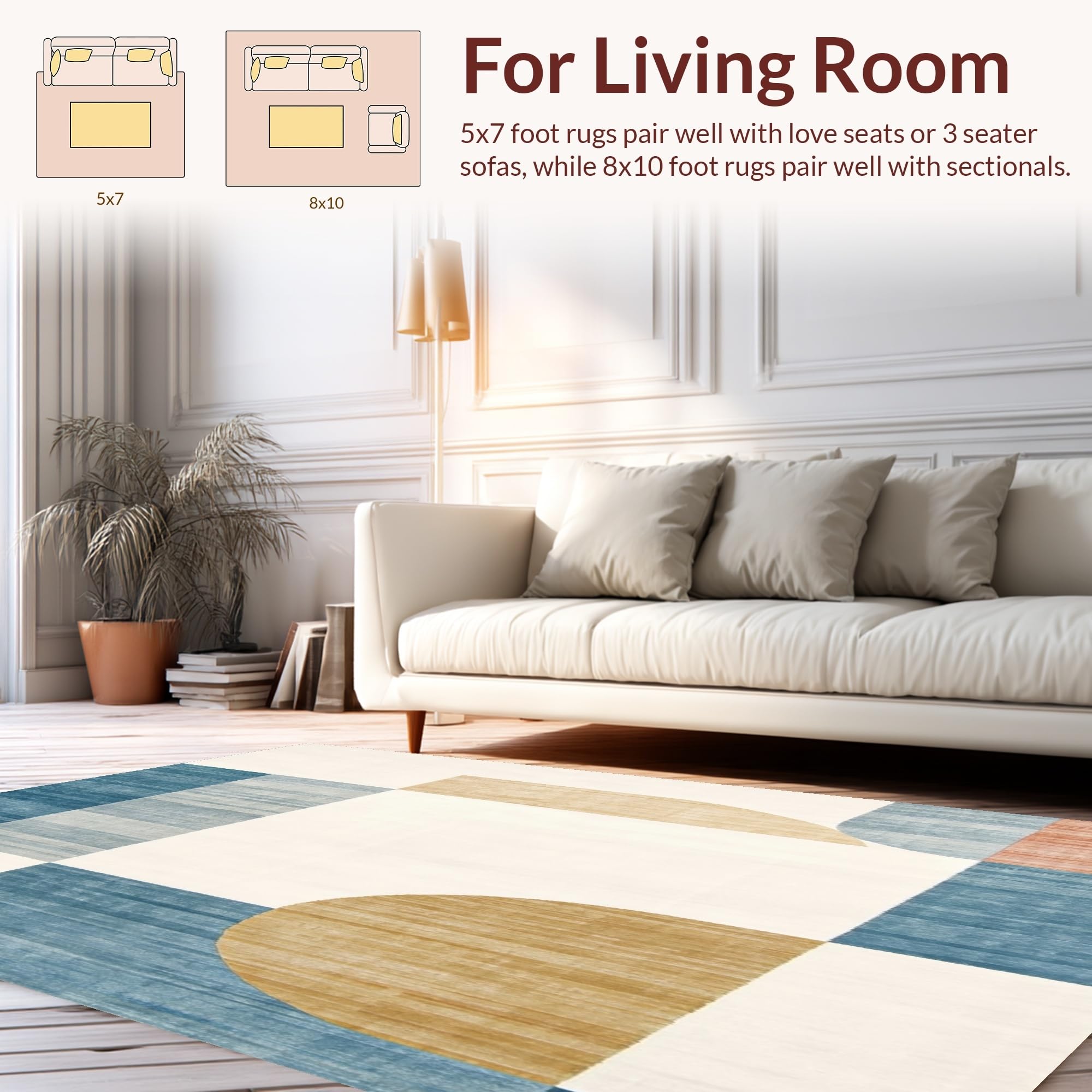 Ultra Soft Area Rug, Non Slip, Stain Resistant, Washable Area Rugs for Living Room, Bedroom, Abstract Geometric Area Modern Home Decor(Beige) Overview: