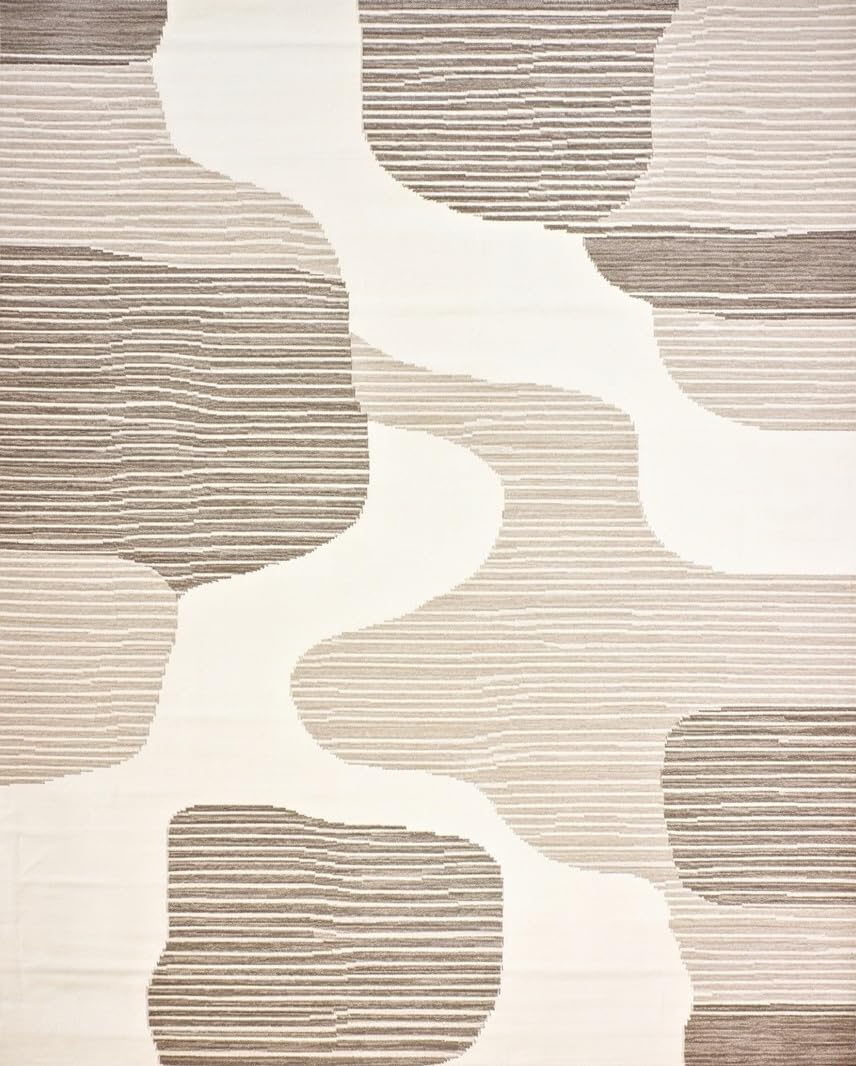 Abstract Geometric Beige Area Contemporary Wavy(Beige)
