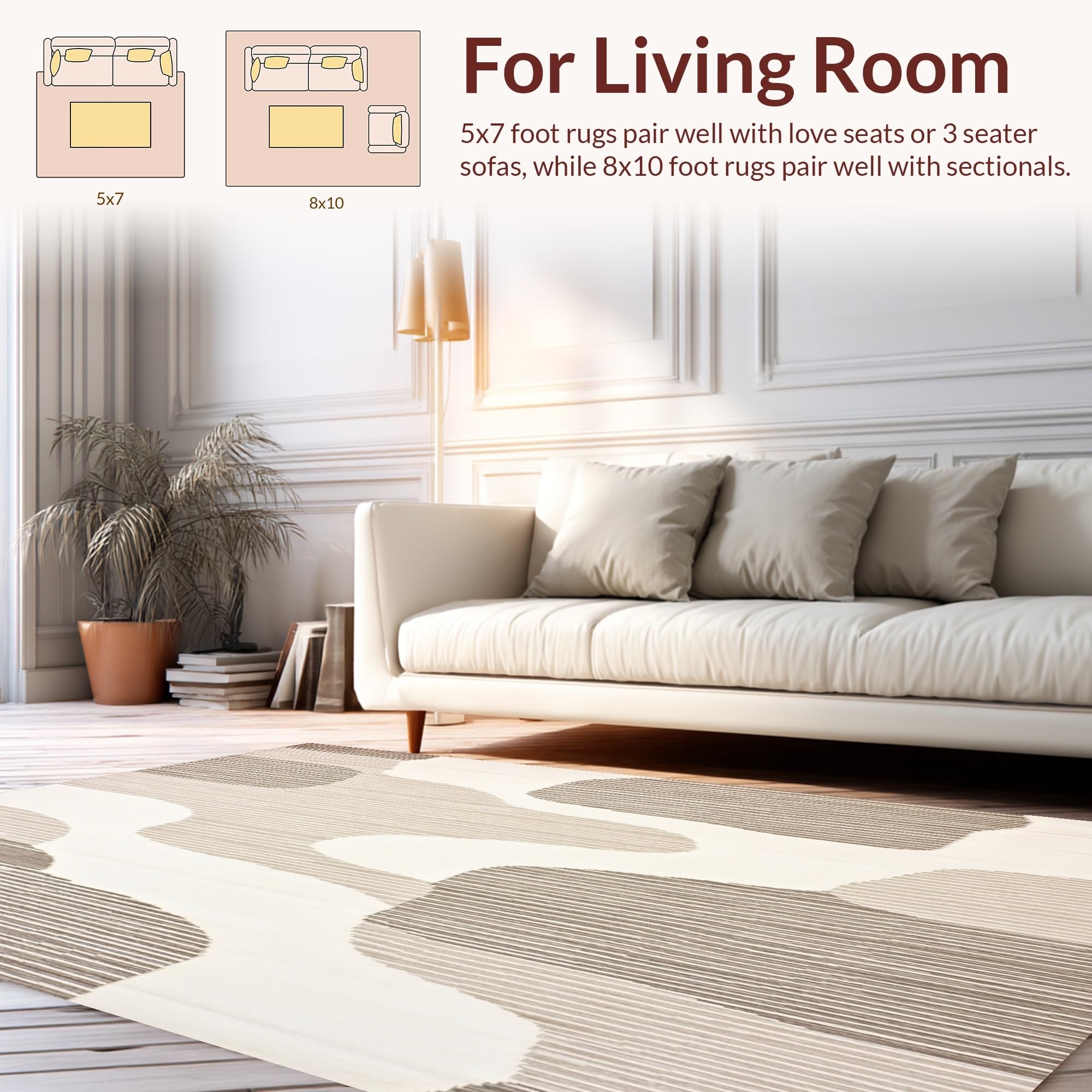 Ultra Soft Area Rug, Non Slip, Stain Resistant, Washable Area Rugs for Living Room, Bedroom, Abstract Geometric Beige Area Contemporary Wavy(Beige) Overview: