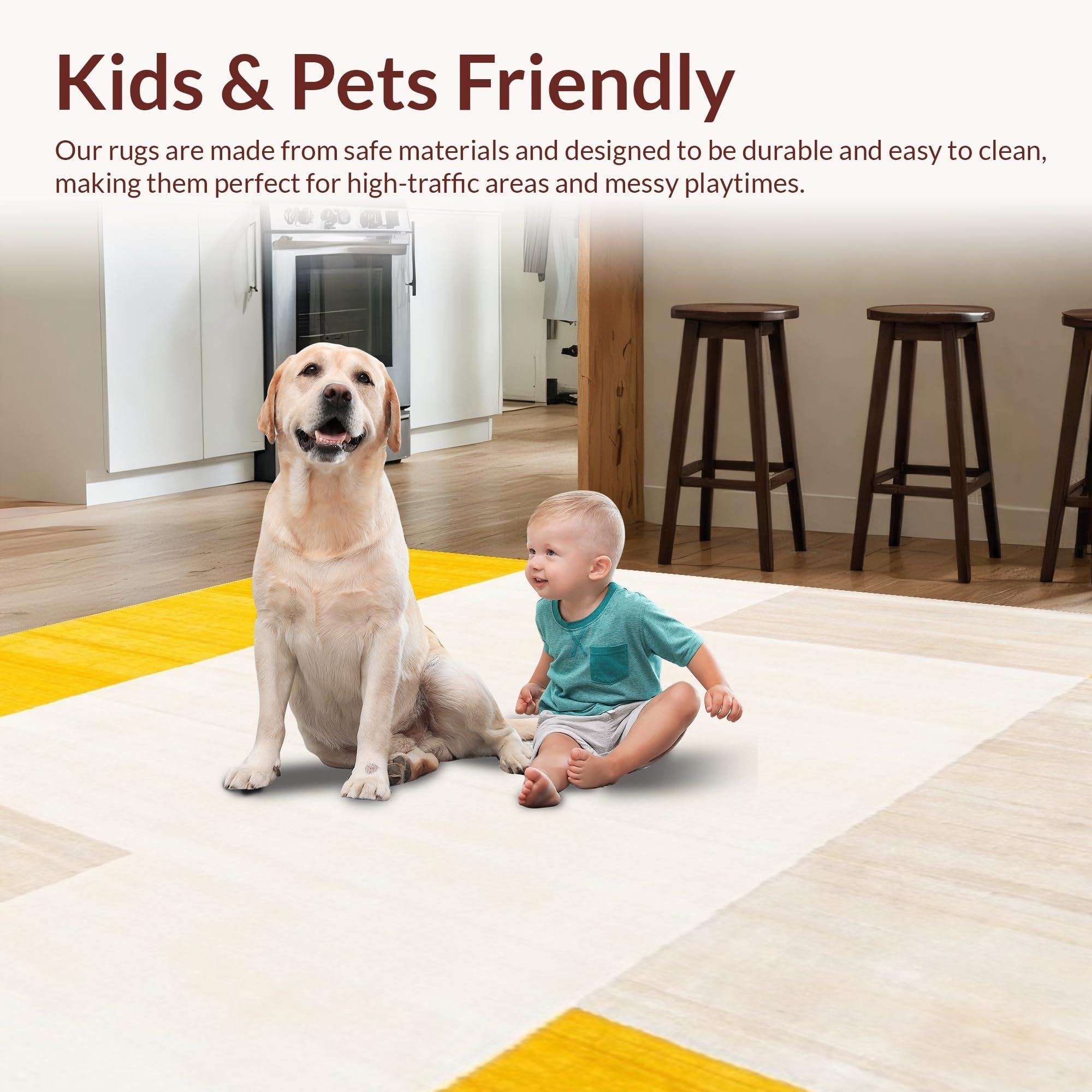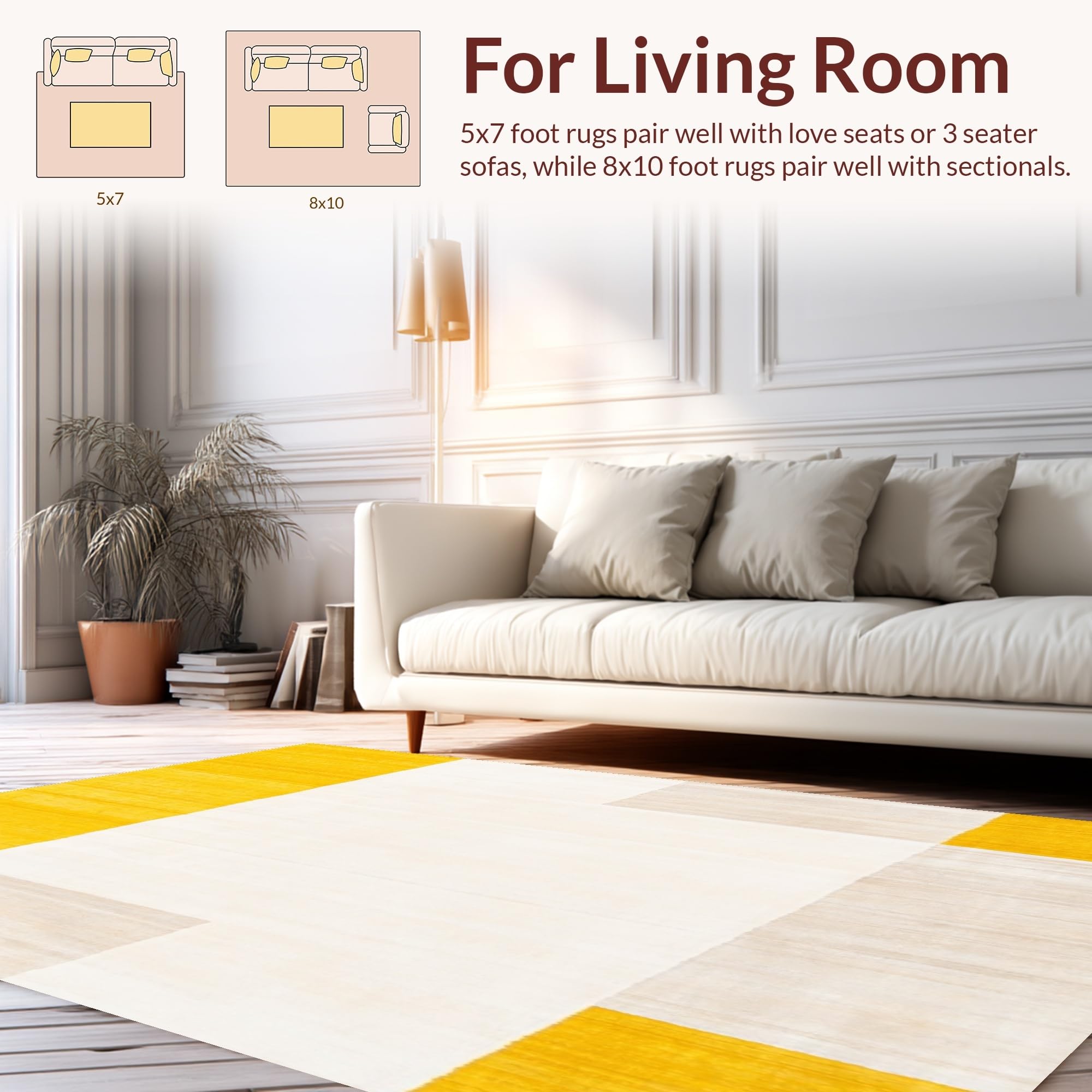 Ultra Soft Area Rug, Non Slip, Stain Resistant, Washable Area Rugs for Living Room, Bedroom, Abstract Geometric Bunny Area for Indoor Comfort Space(Yellow) Overview:
