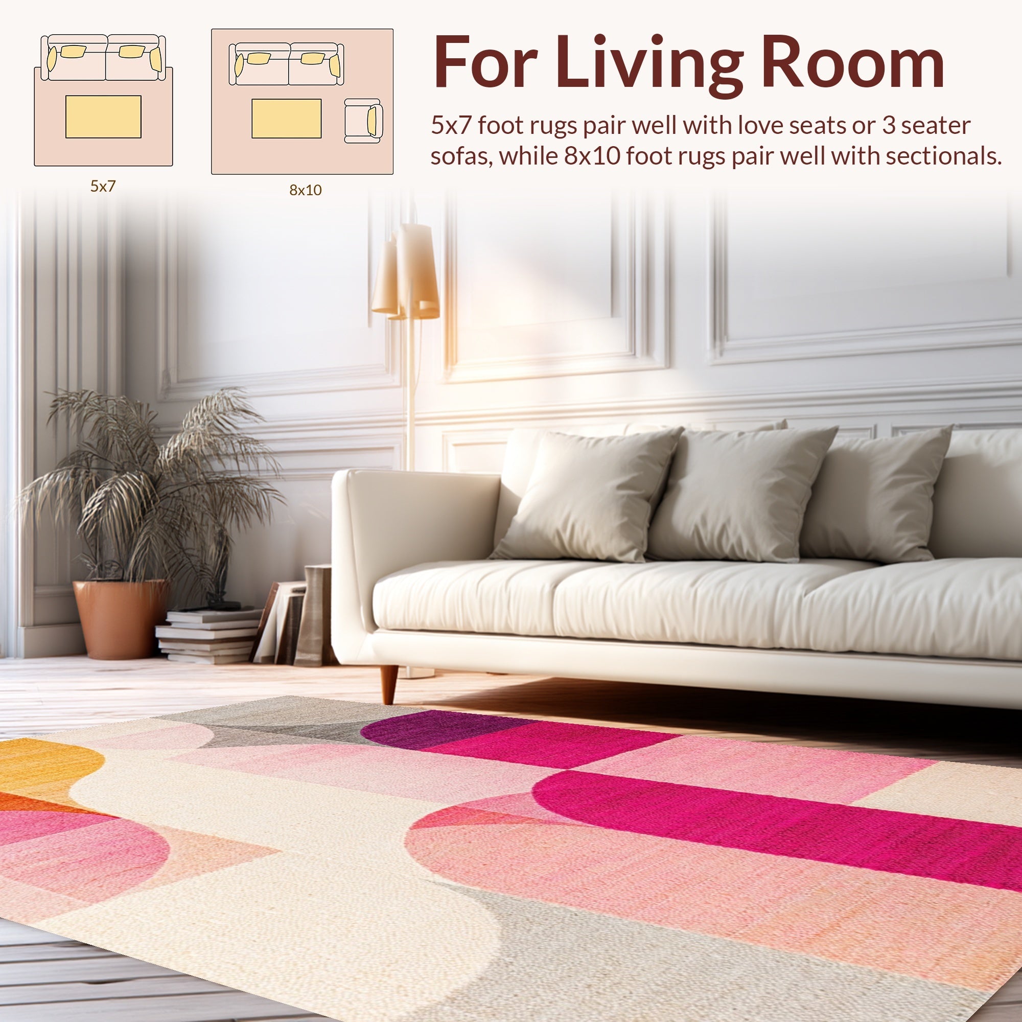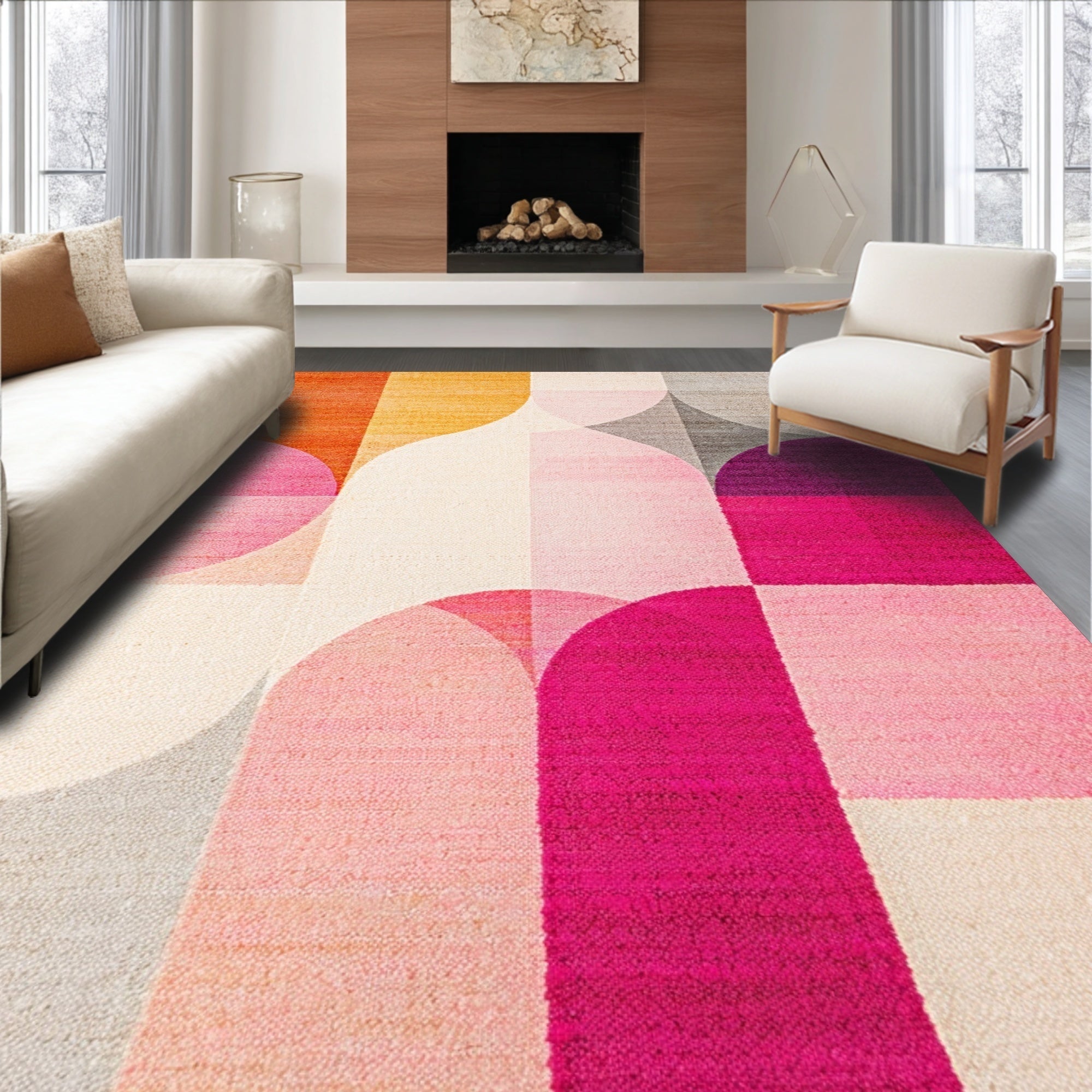 Ultra Soft Area Rug, Non Slip, Stain Resistant, Washable Area Rugs for Living Room, Bedroom, Abstract Geometric Faded(Orange) Overview: