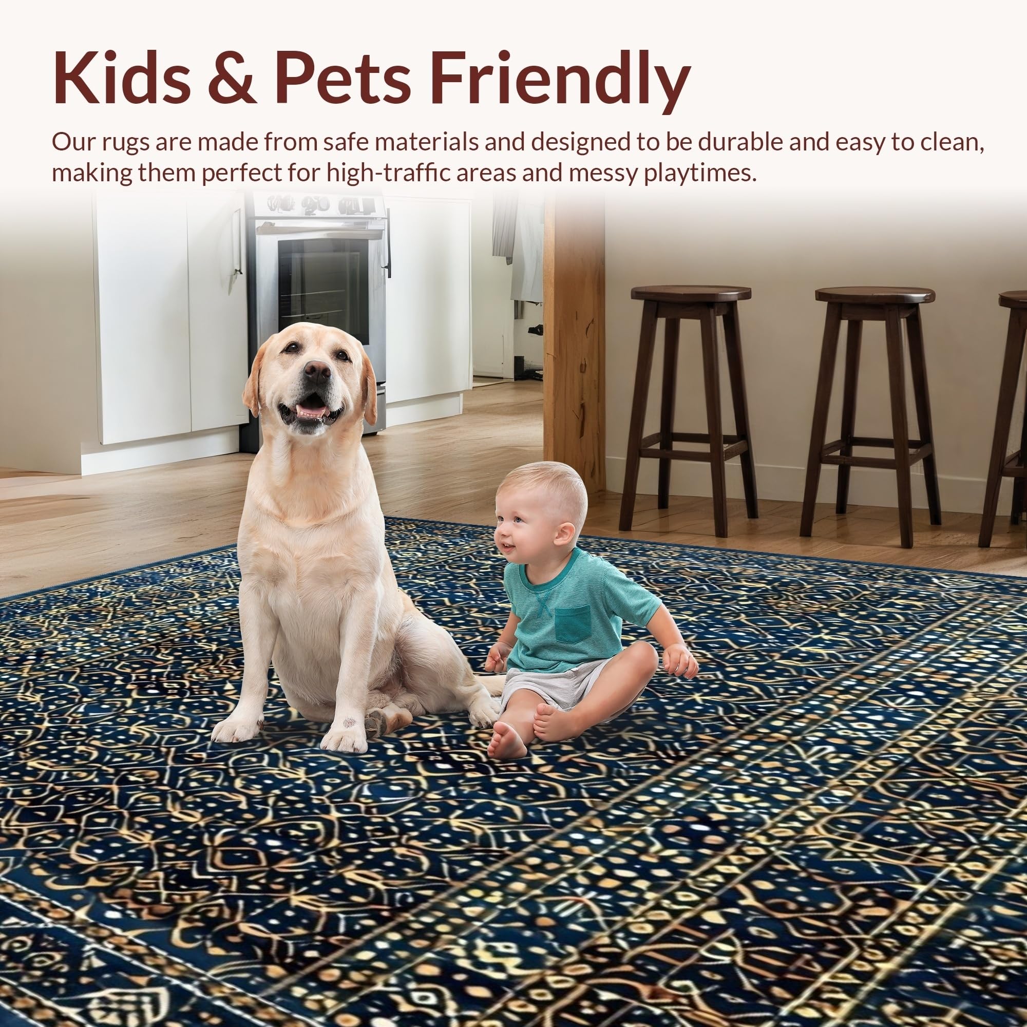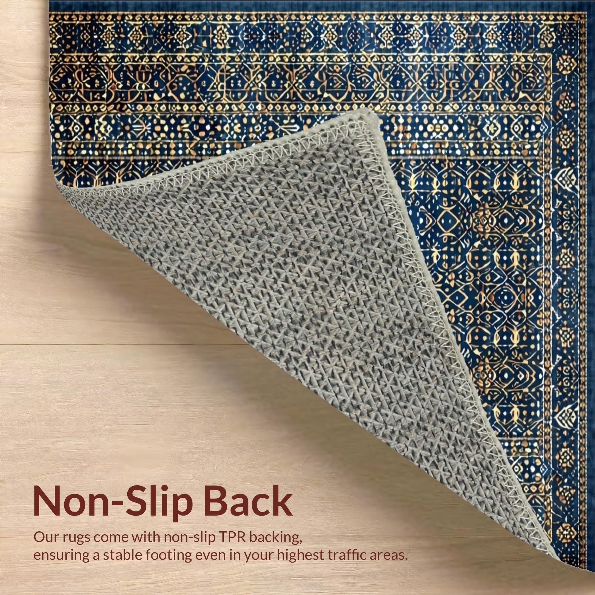 Ultra Soft Area Rug, Non Slip, Stain Resistant, Washable Area Rugs for Living Room, Bedroom, Abstract Geometric Flair(Blue) Overview: