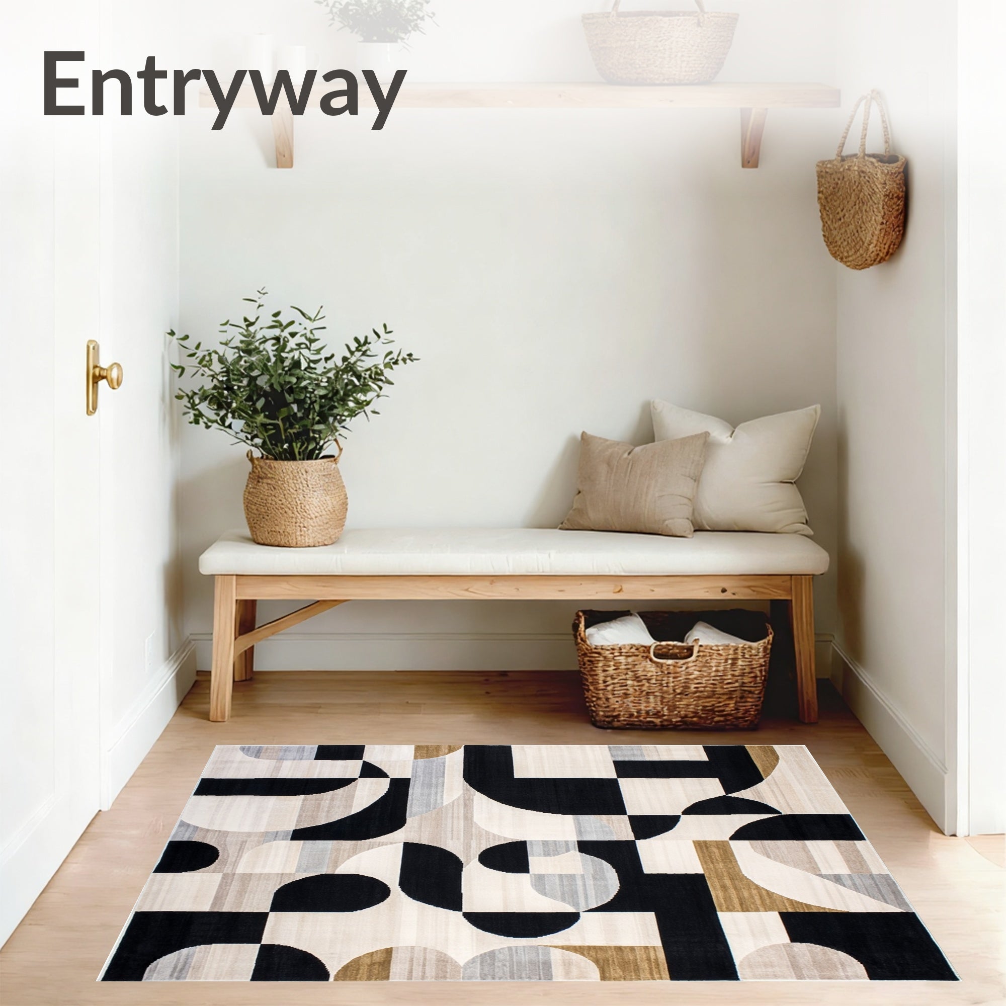 Ultra Soft Area Rug, Non Slip, Stain Resistant, Washable Area Rugs for Living Room, Bedroom, Abstract Geometric Reversible Area for Modern Spaces(Beige) Overview: