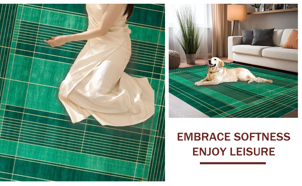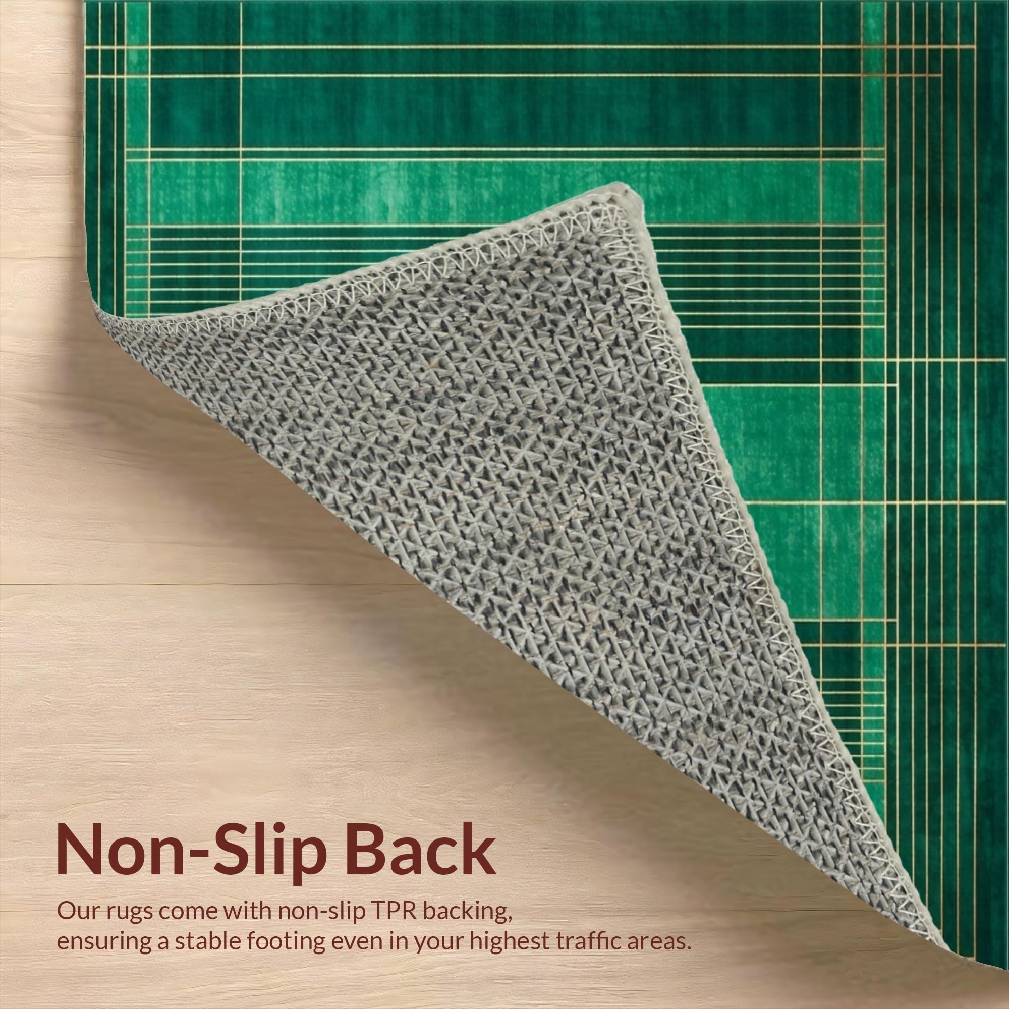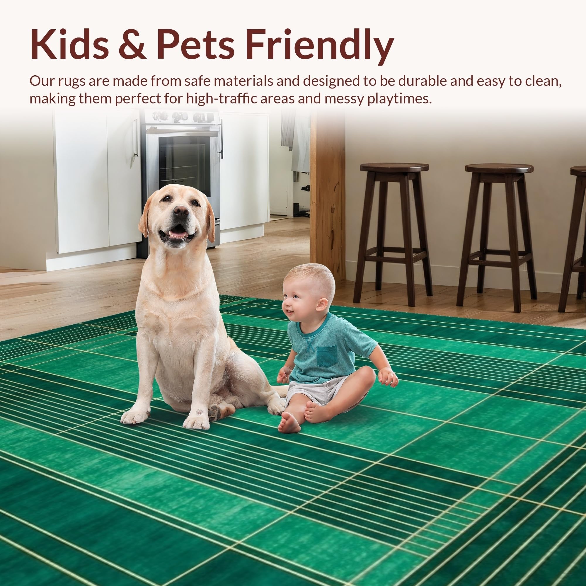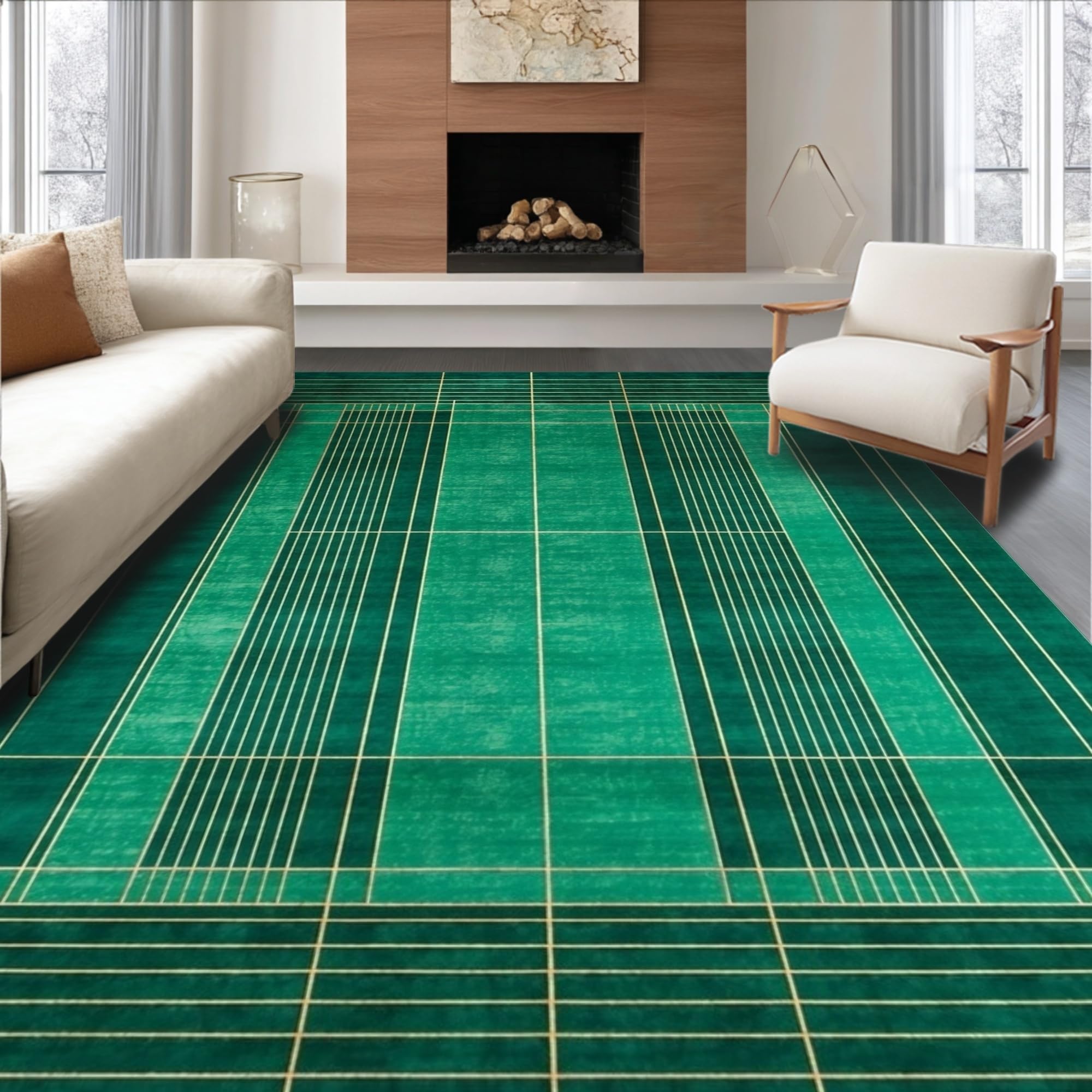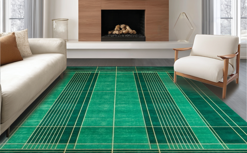 Ultra Soft Area Rug, Non Slip, Stain Resistant, Washable Area Rugs for Living Room, Bedroom, Abstract Gold Linear Artistry(Green) Overview: