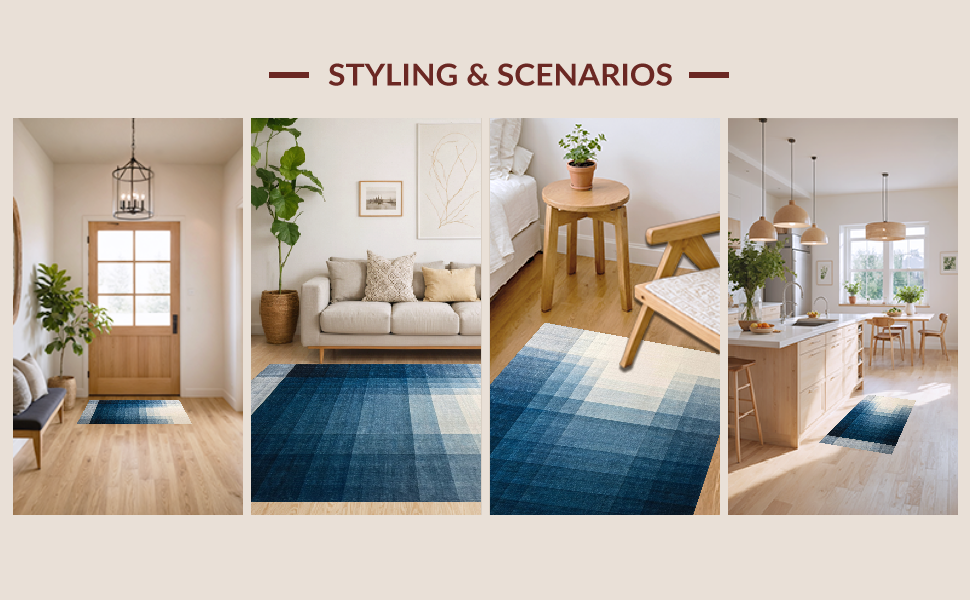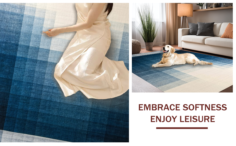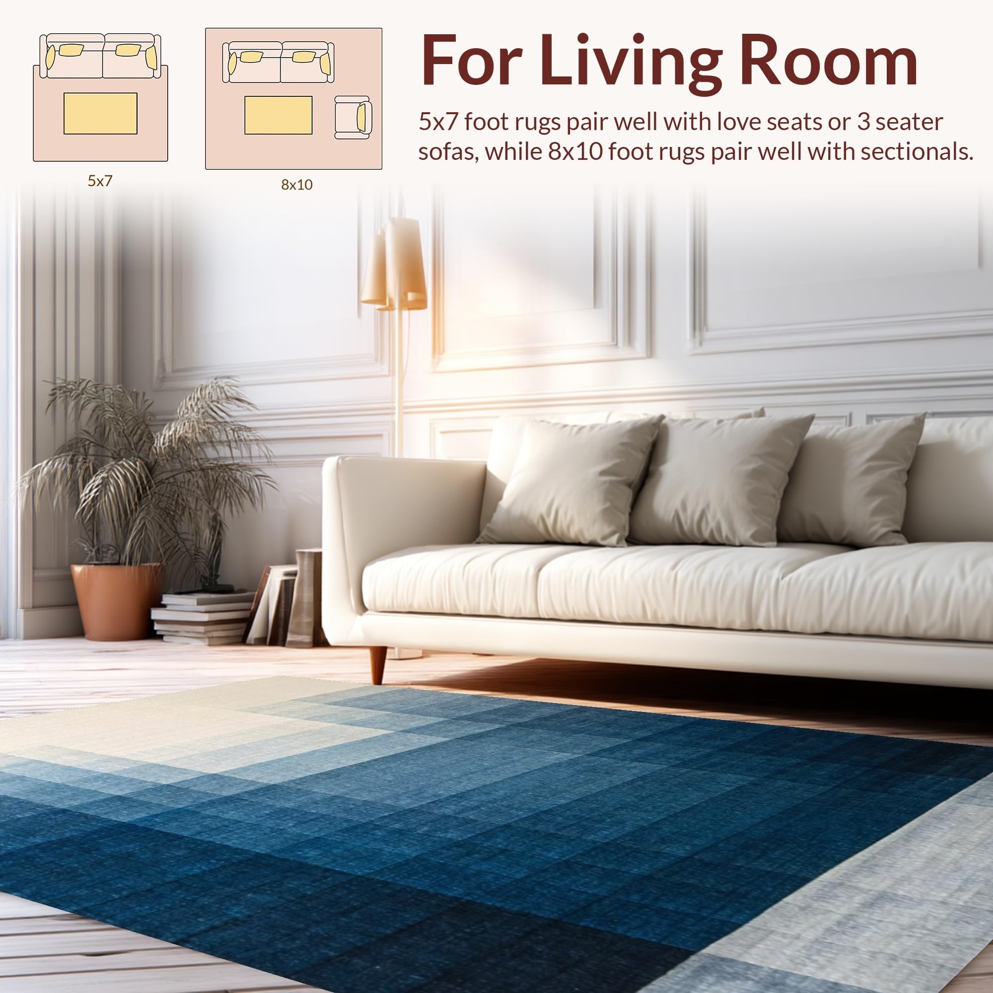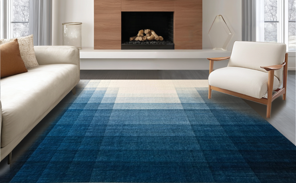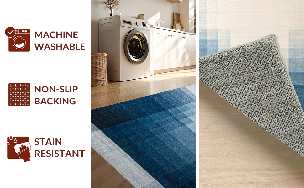 Ultra Soft Area Rug, Non Slip, Stain Resistant, Washable Area Rugs for Living Room, Bedroom, Abstract Gradient Striped Rug(Blue) Overview: