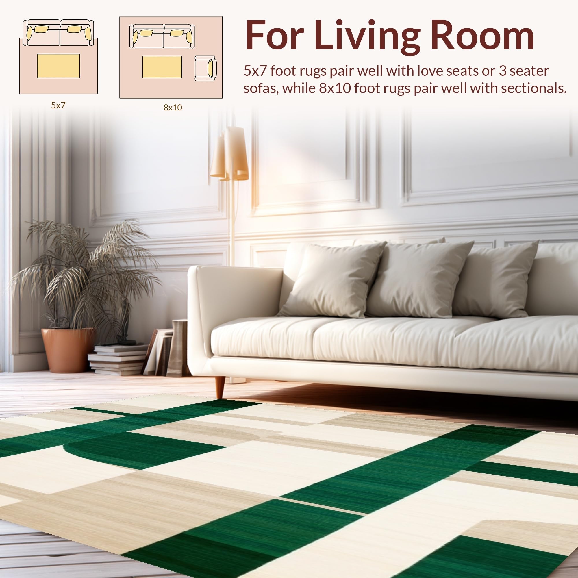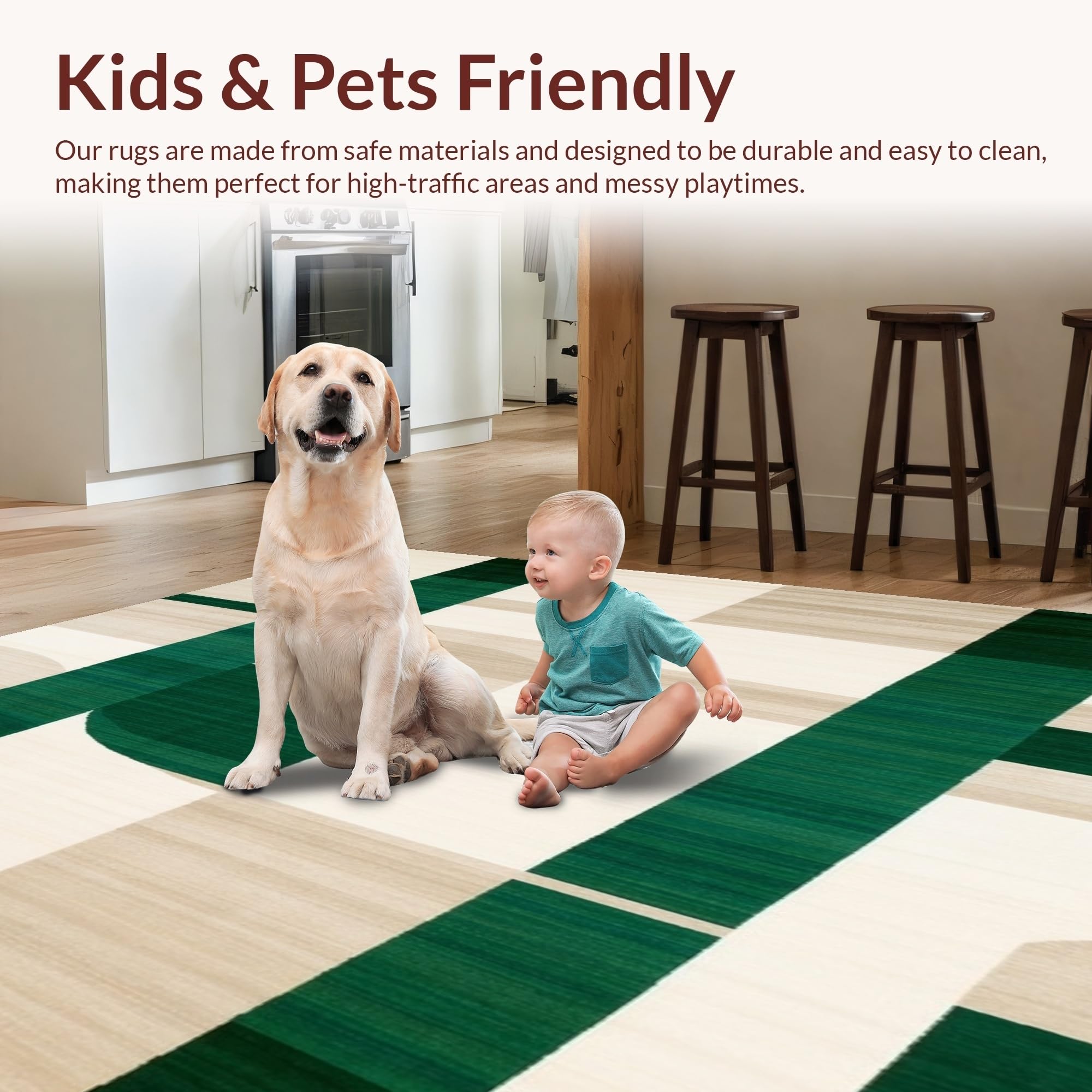 Ultra Soft Area Rug, Non Slip, Stain Resistant, Washable Area Rugs for Living Room, Bedroom, Abstract Green Beige Area(Beige) Overview: