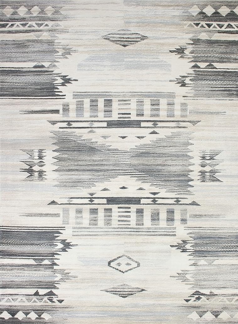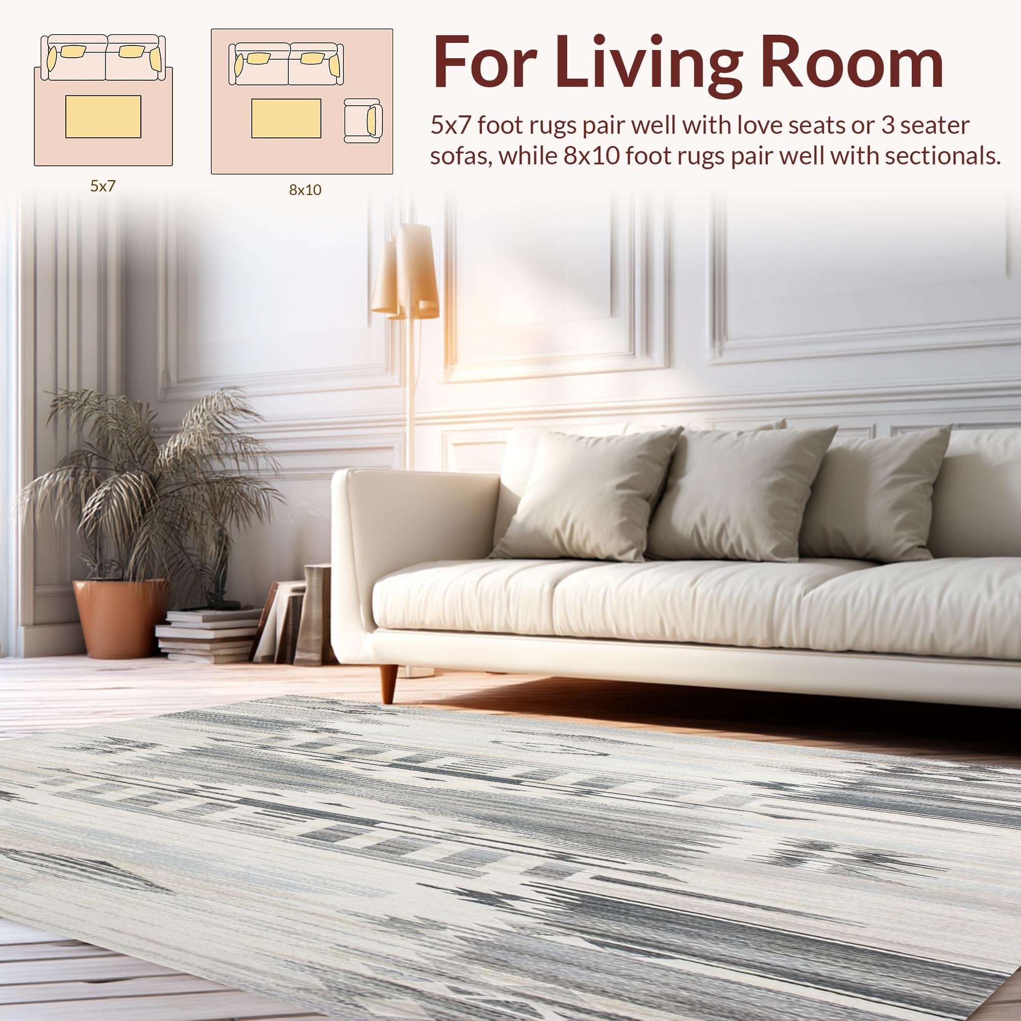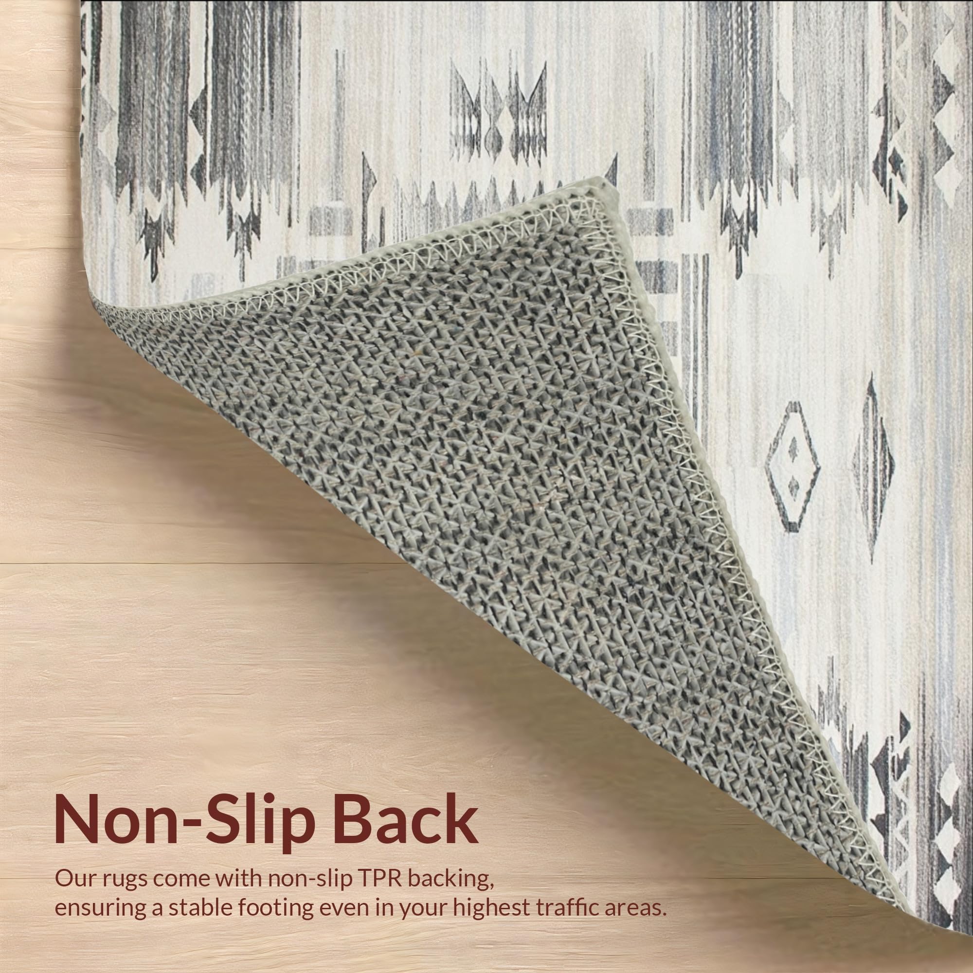 Ultra Soft Area Rug, Non Slip, Stain Resistant, Washable Area Rugs for Living Room, Bedroom, Abstract Grey and Cream Tumble Pattern Rug with Distressed Tribal Motifs(Gray) Overview: