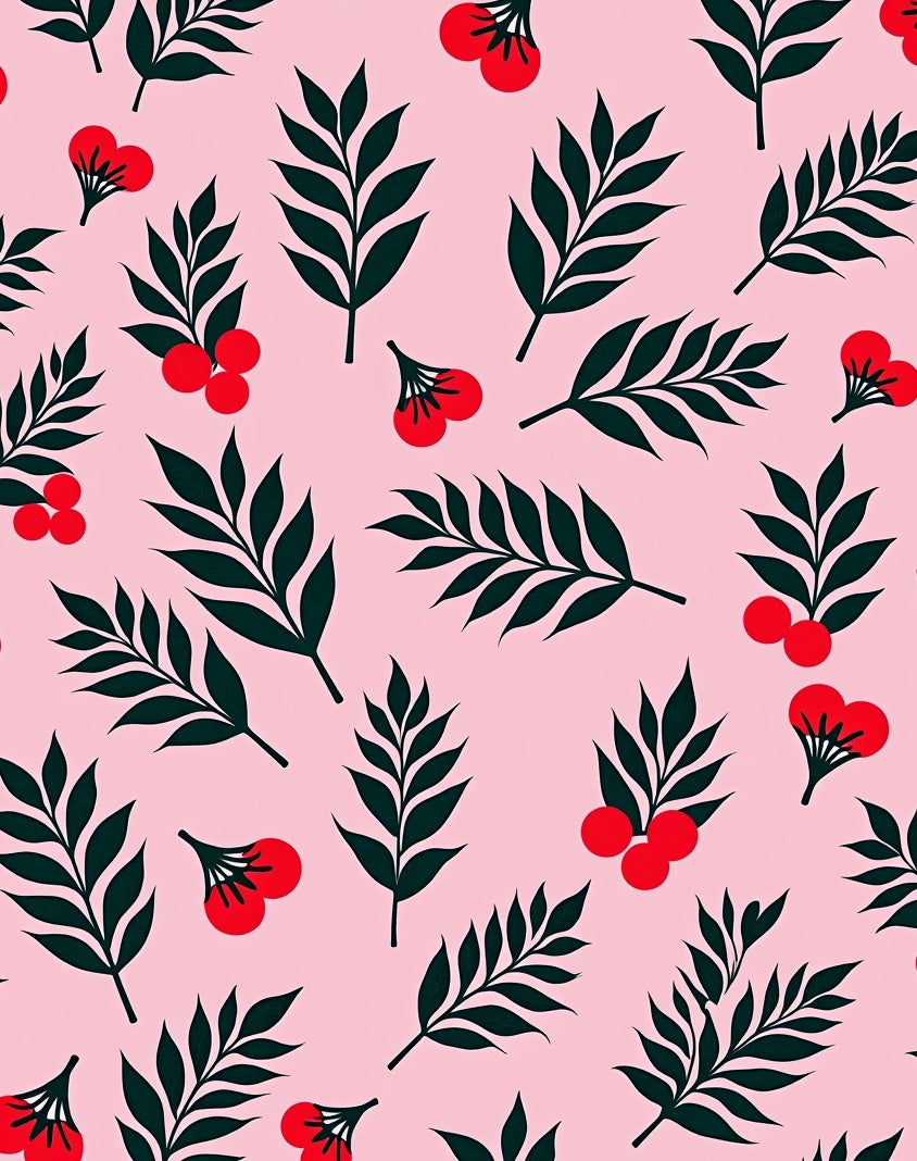 Abstract Holly Berry Branch Decorative Nature Inspired Area(Pink)