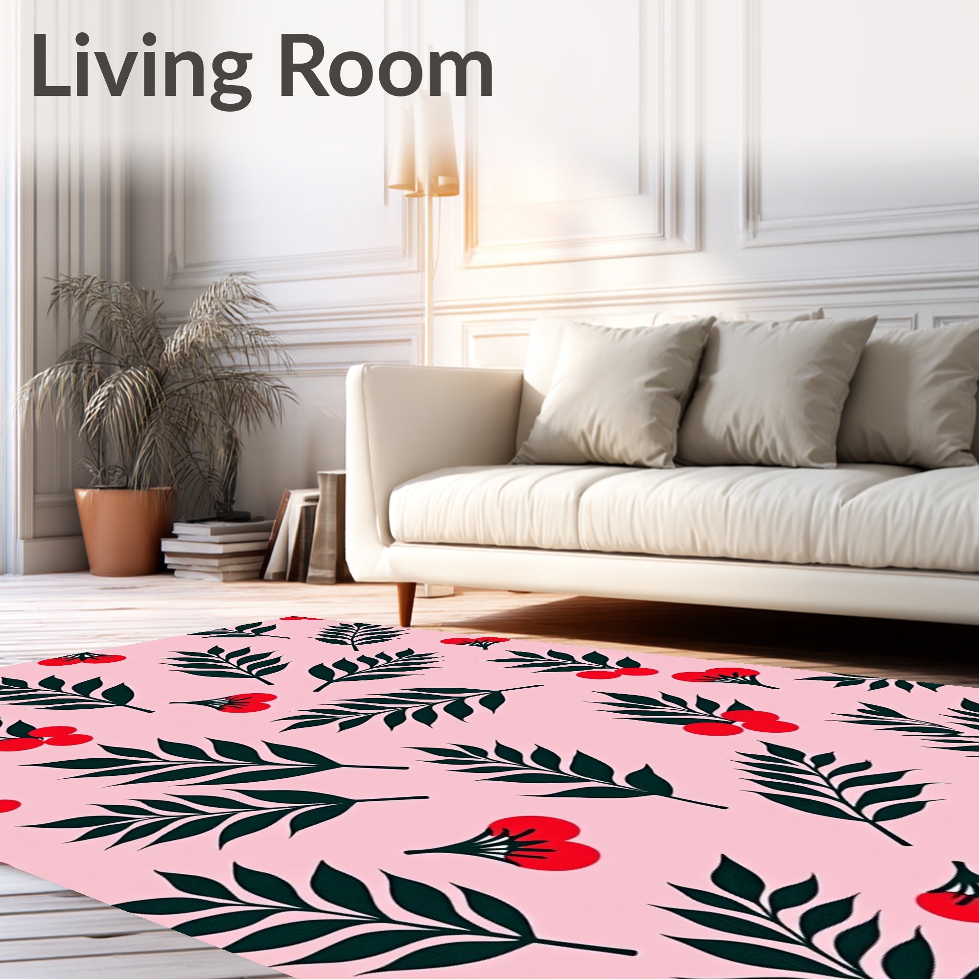Ultra Soft Area Rug, Non Slip, Stain Resistant, Washable Area Rugs for Living Room, Bedroom, Abstract Holly Berry Branch Decorative Nature Inspired Area(Pink) Overview: