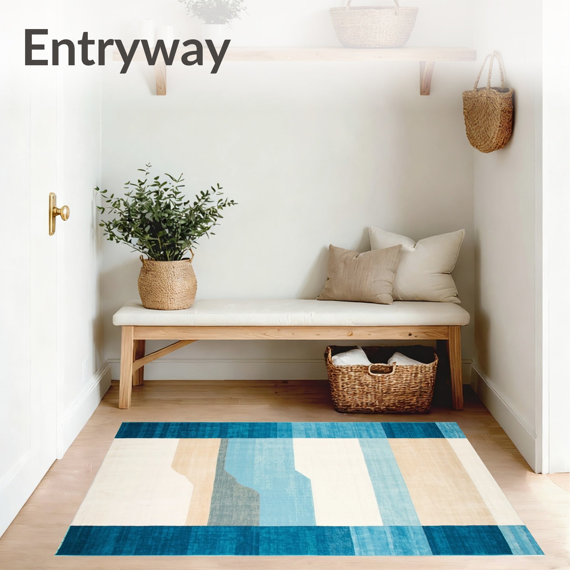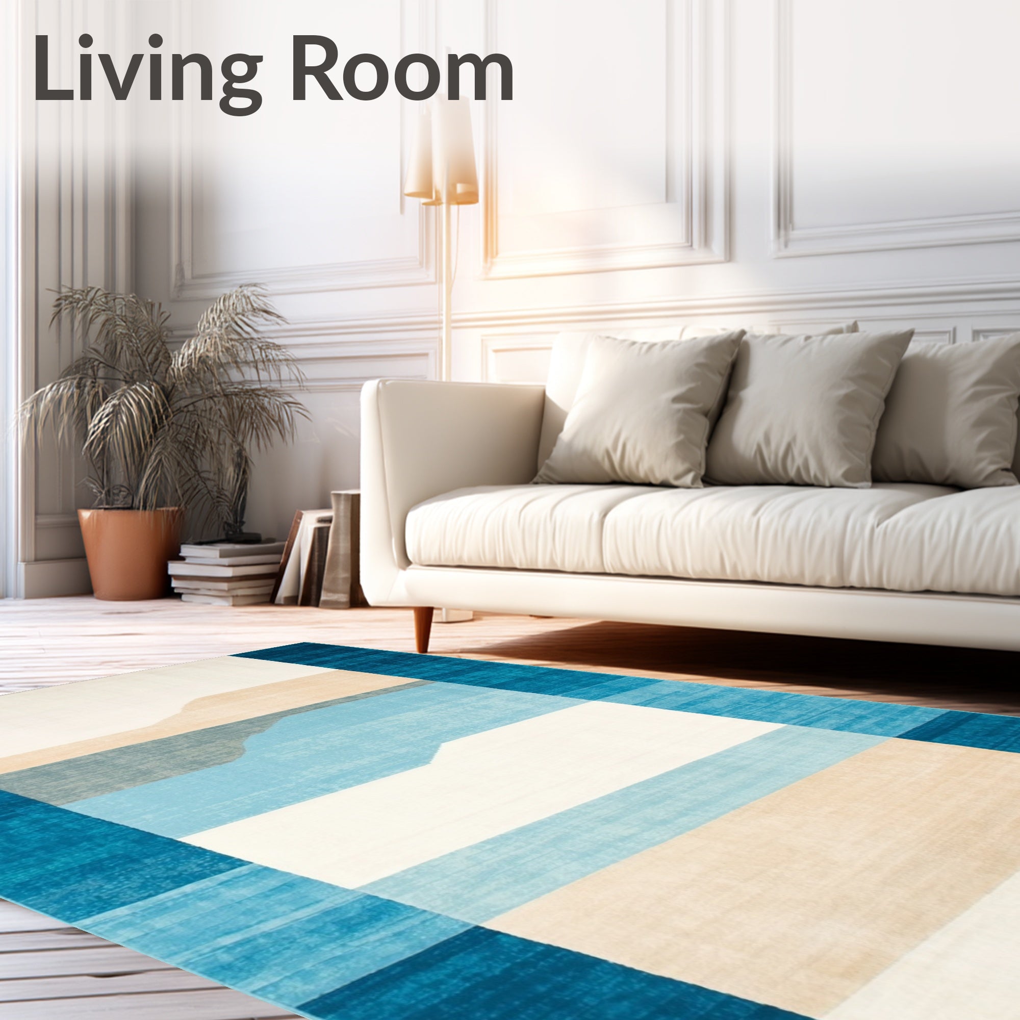 Ultra Soft Area Rug, Non Slip, Stain Resistant, Washable Area Rugs for Living Room, Bedroom, Abstract Horizon Area Dune and Sky Inspired Modern(Blue) Overview: