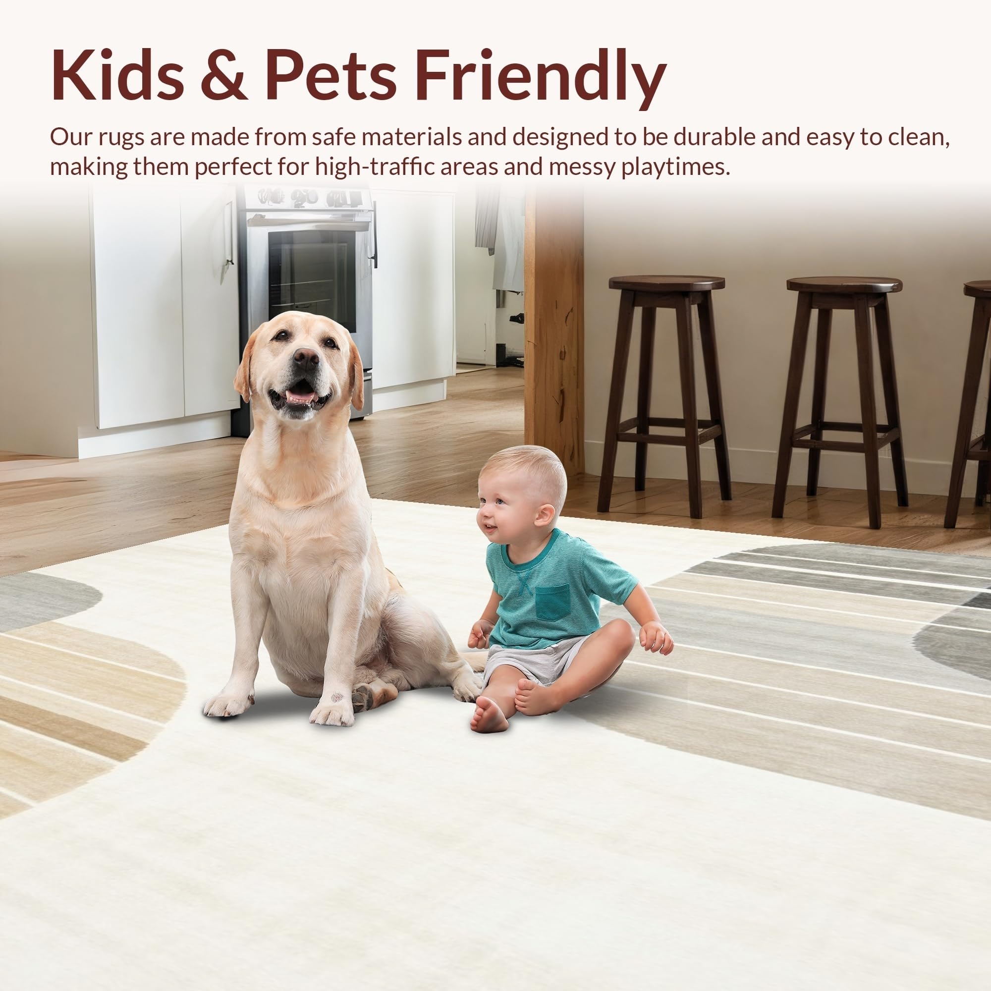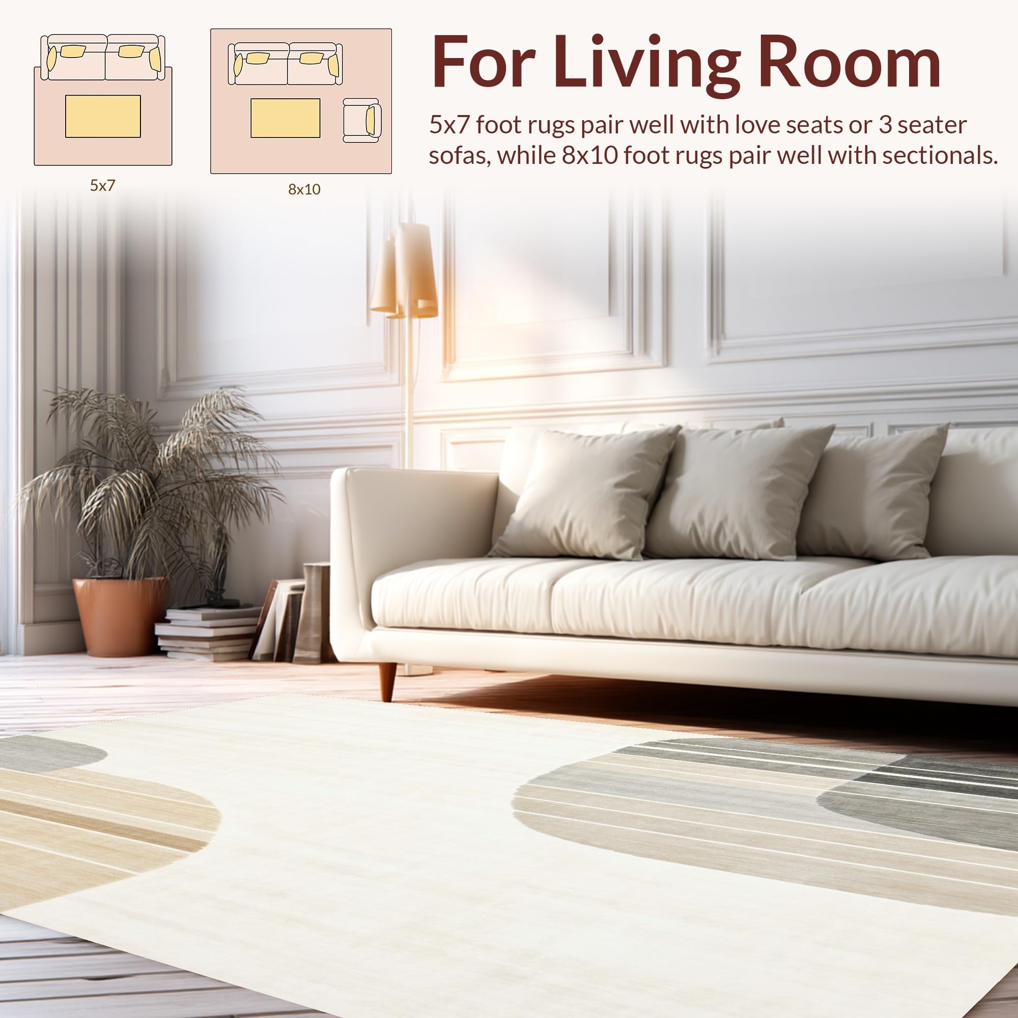 Ultra Soft Area Rug, Non Slip, Stain Resistant, Washable Area Rugs for Living Room, Bedroom, Abstract Horizon Beige Area Modern Earth Tone(Beige) Overview: