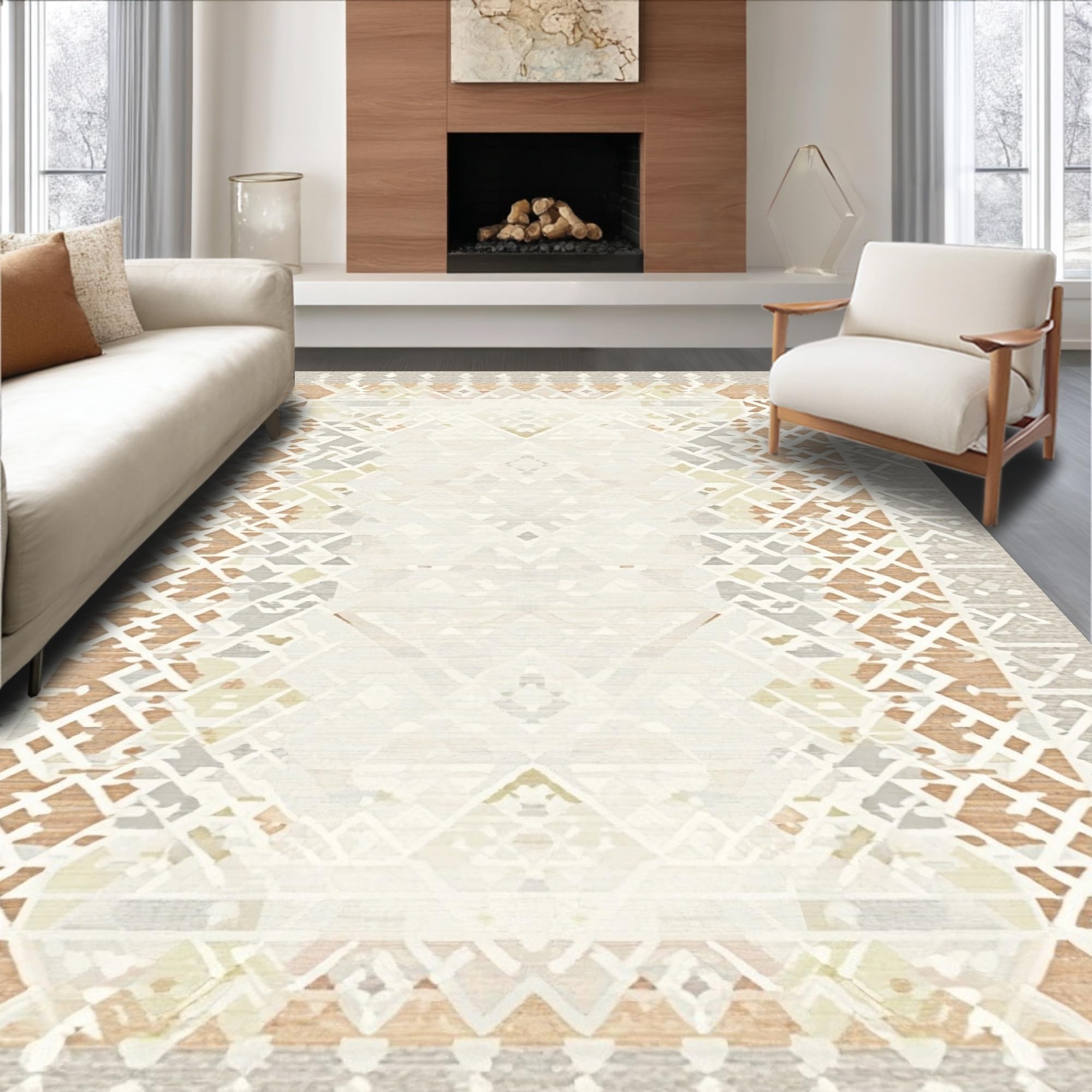 Ultra Soft Area Rug, Non Slip, Stain Resistant, Washable Area Rugs for Living Room, Bedroom, Abstract Horizon Diamond Area in Beige and Ivory Tones(Beige) Overview: