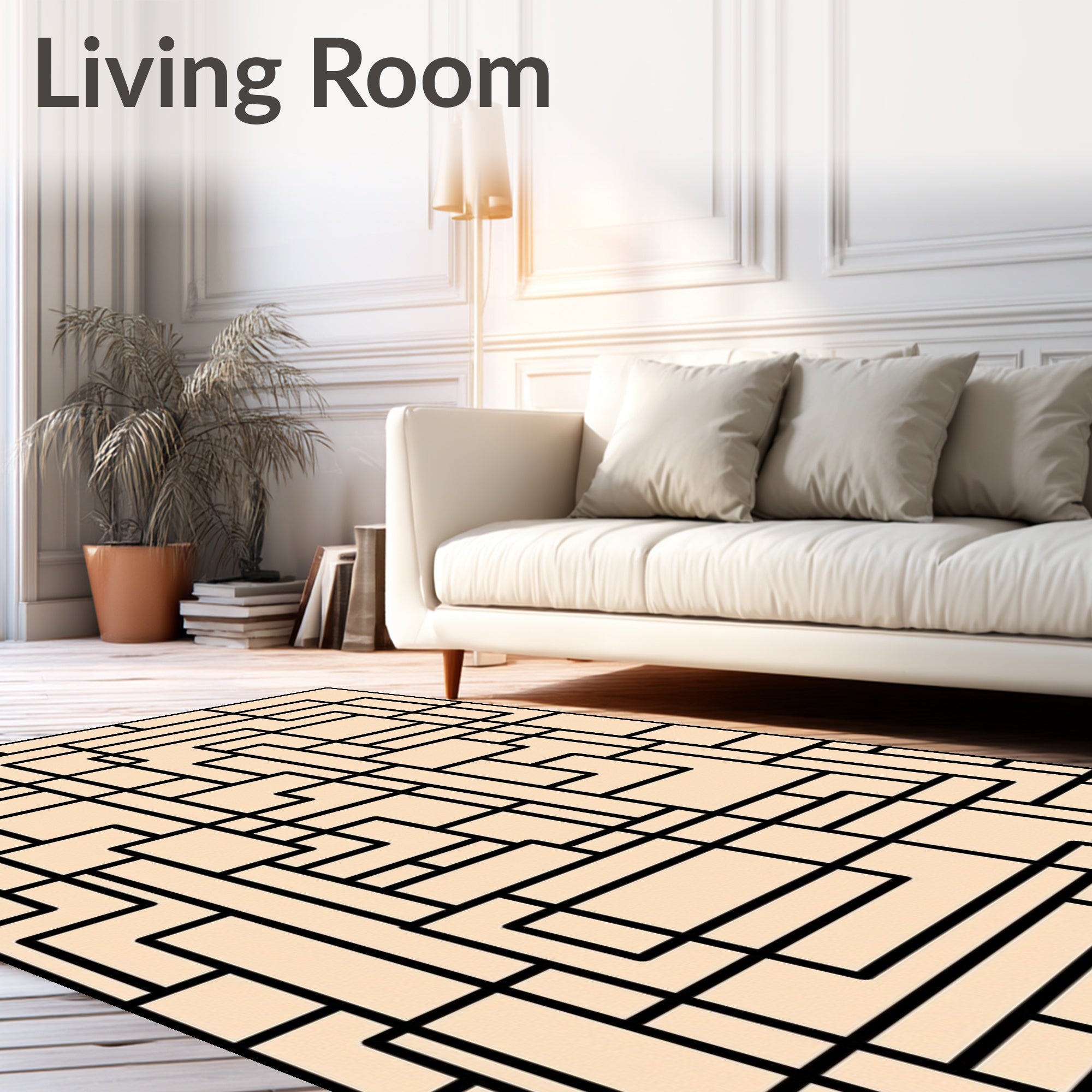 Ultra Soft Area Rug, Non Slip, Stain Resistant, Washable Area Rugs for Living Room, Bedroom, Abstract Labyrinth Maze Featuring Artistic Grid Framework(Beige) Overview: