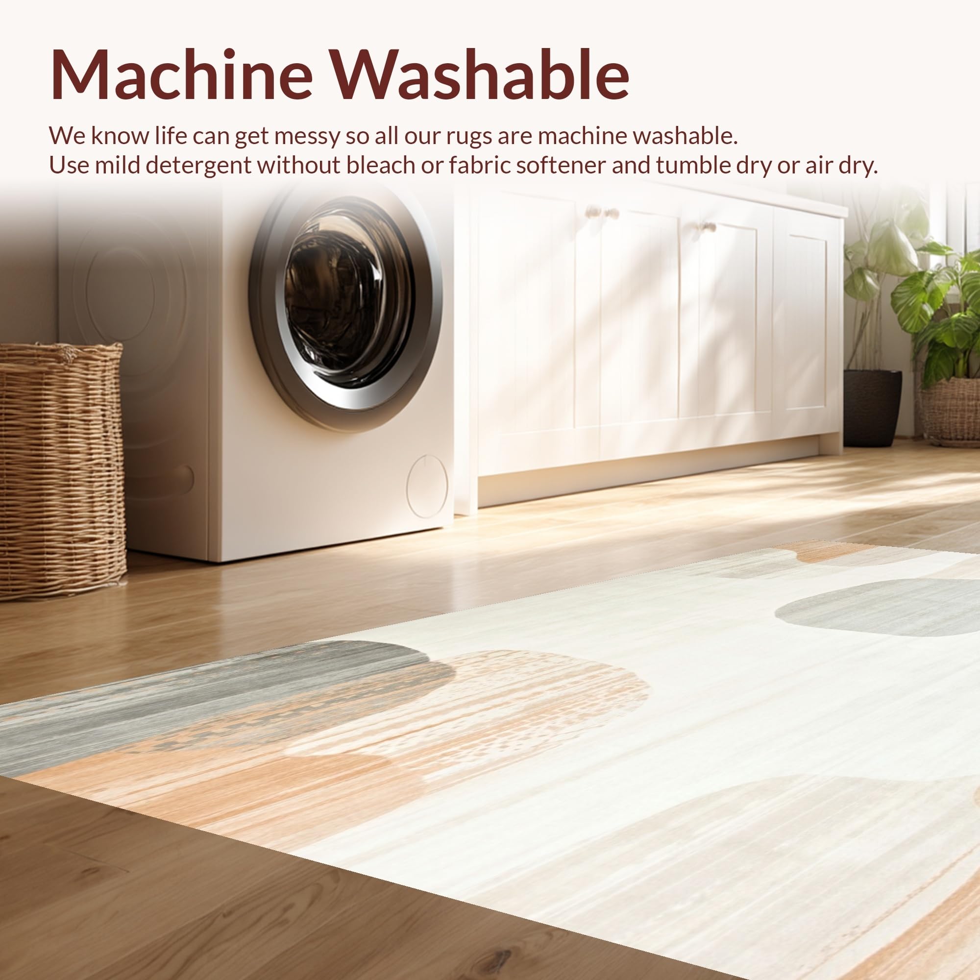- Machine Washable: Our rugs can be easily thrown in the wash machine.