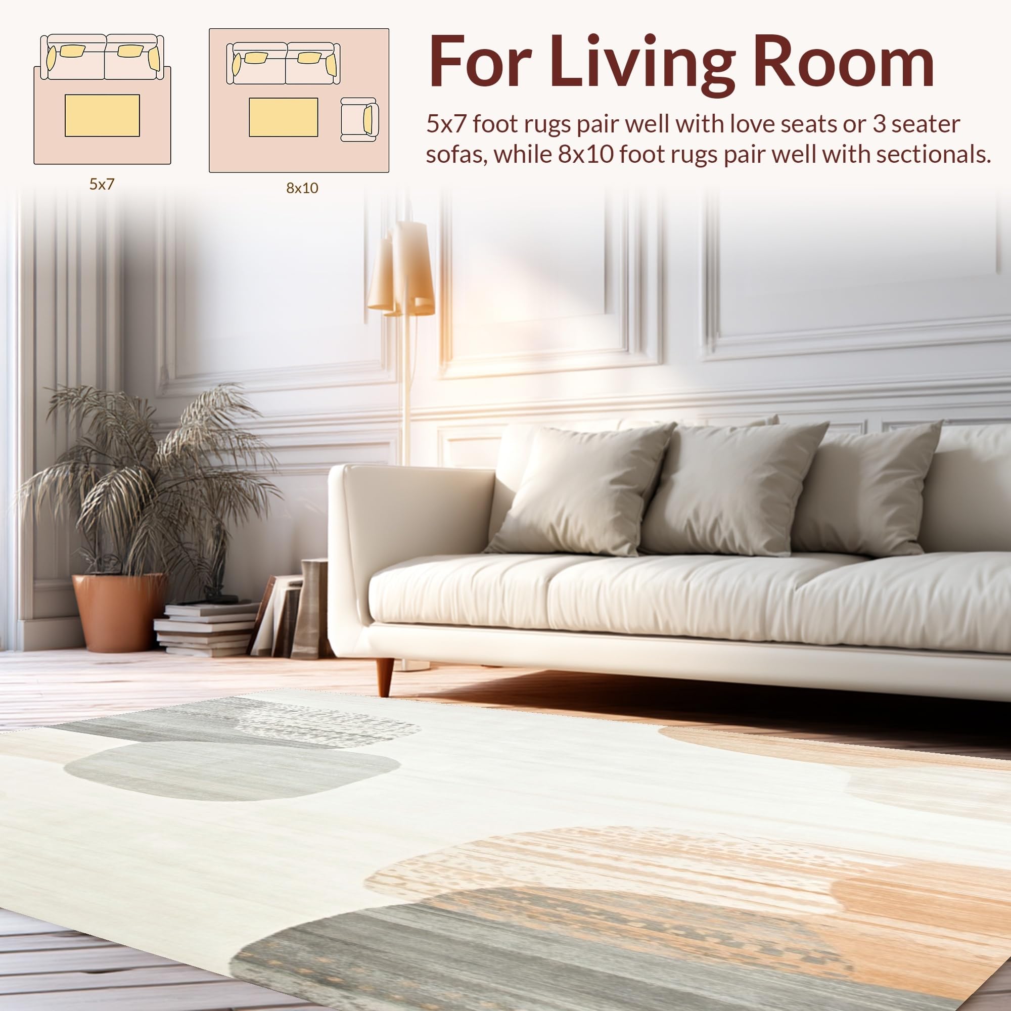 Ultra Soft Area Rug, Non Slip, Stain Resistant, Washable Area Rugs for Living Room, Bedroom, Abstract Large for Neutral Decor(Beige) Overview:
