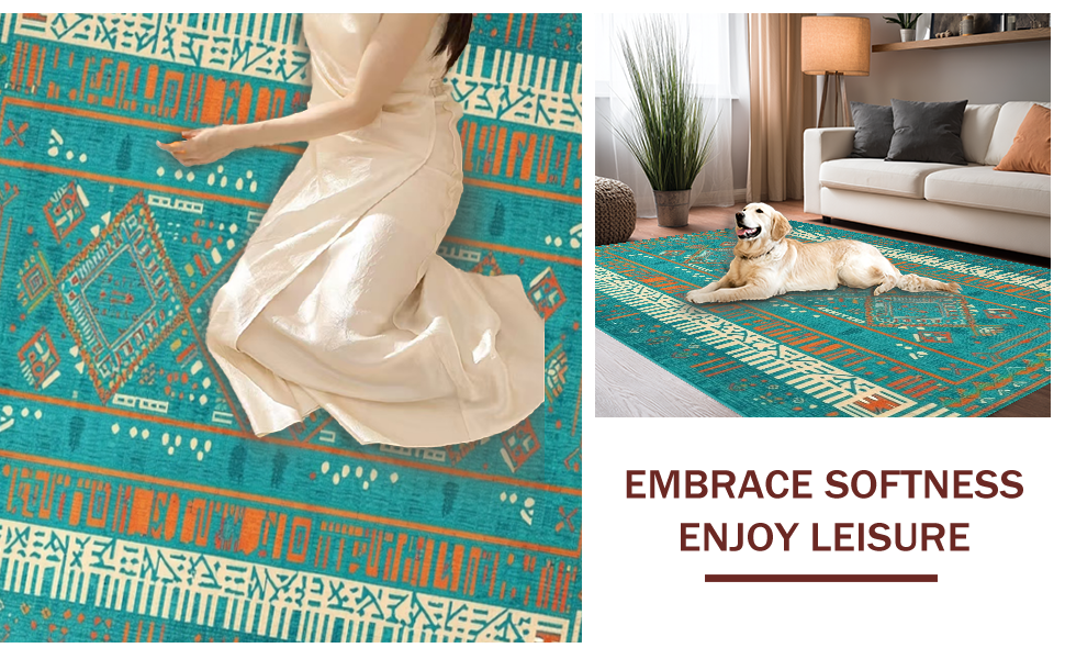 Ultra Soft Area Rug, Non Slip, Stain Resistant, Washable Area Rugs for Living Room, Bedroom, Abstract Lattice Design Aesthetic(Blue) Overview: