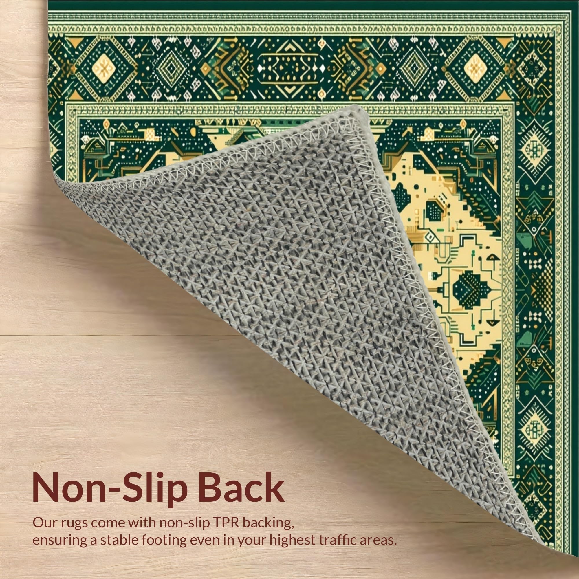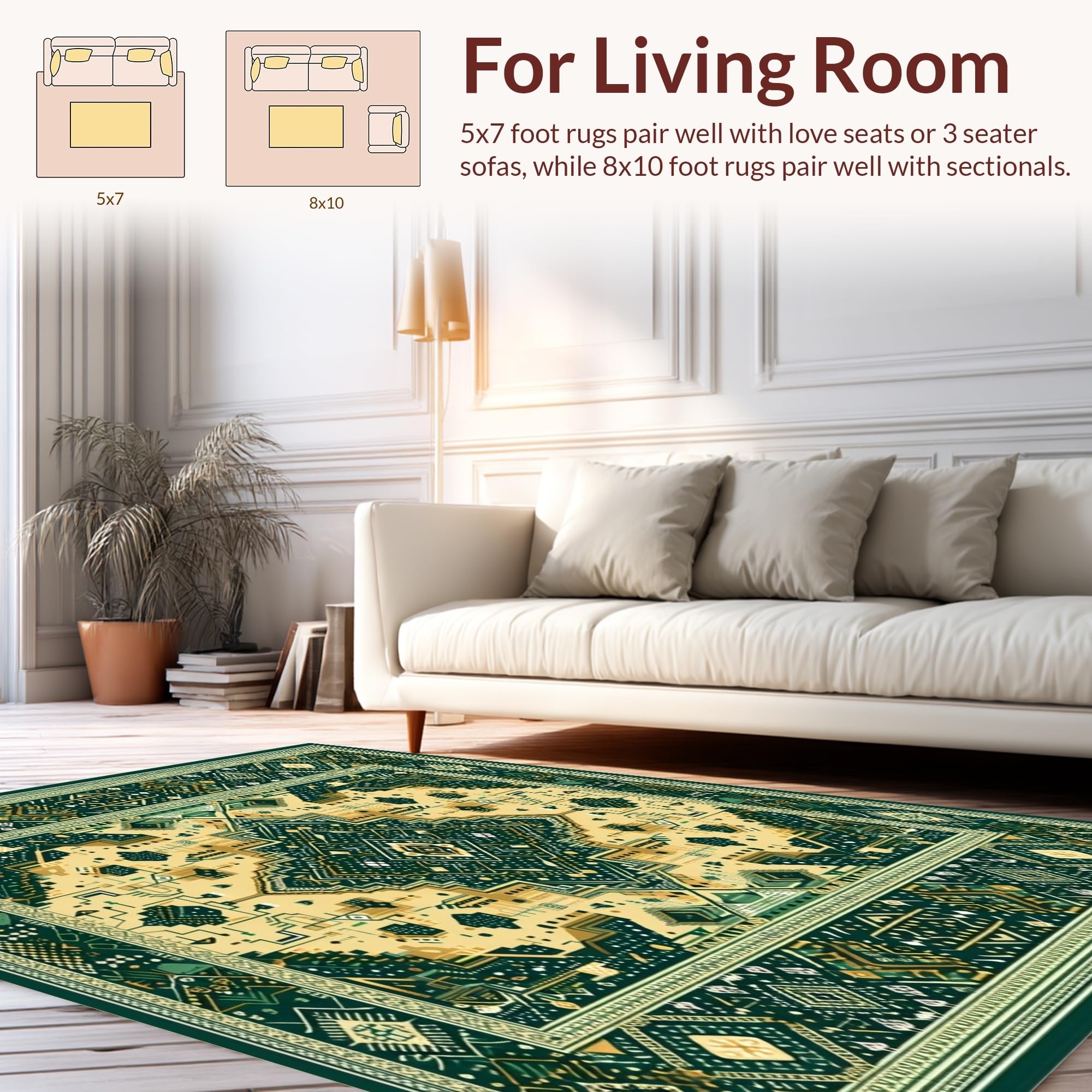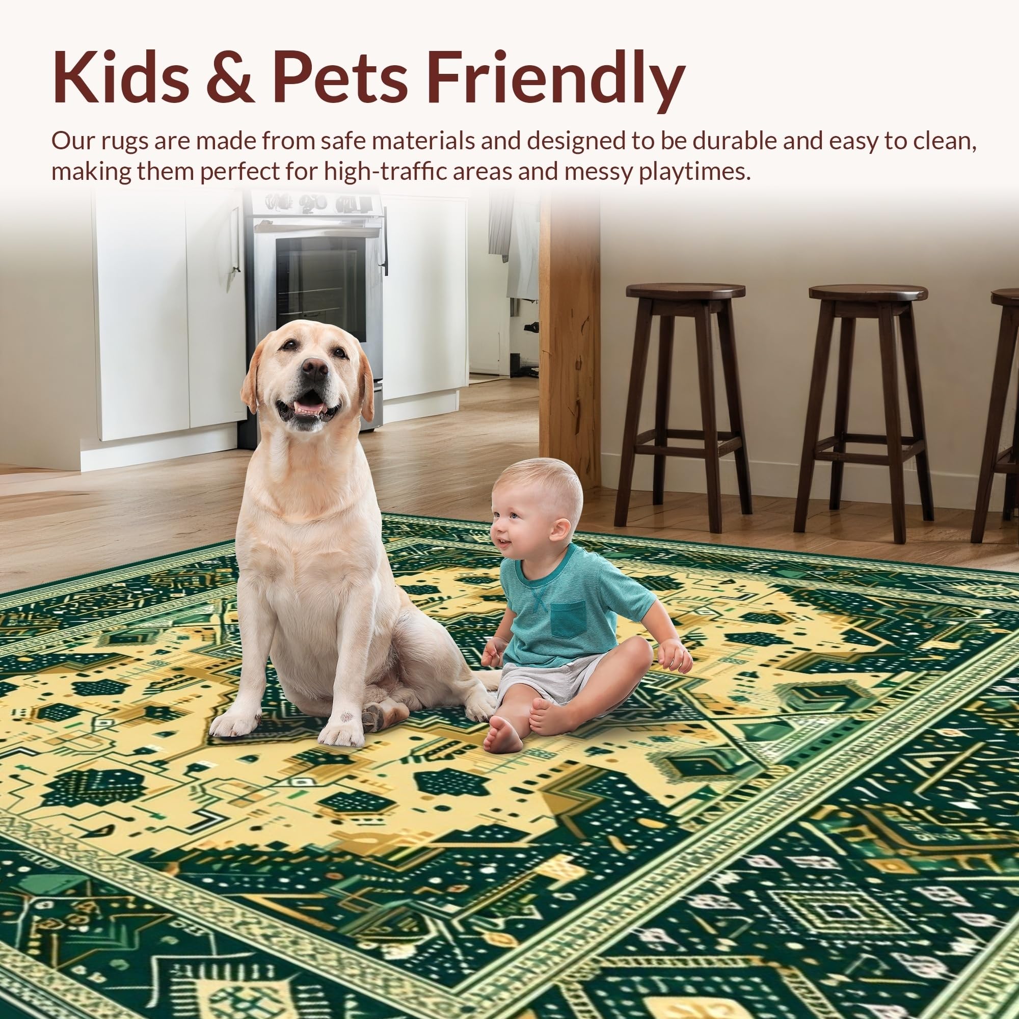 Ultra Soft Area Rug, Non Slip, Stain Resistant, Washable Area Rugs for Living Room, Bedroom, Abstract Leopard Deep Green and Gold Accents(Beige) Overview: