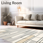 Ultra Soft Area Rug, Non Slip, Stain Resistant, Washable Area Rugs for Living Room, Bedroom, Abstract Line Art Area in Muted Beige and Grey Palette(Beige) Overview: