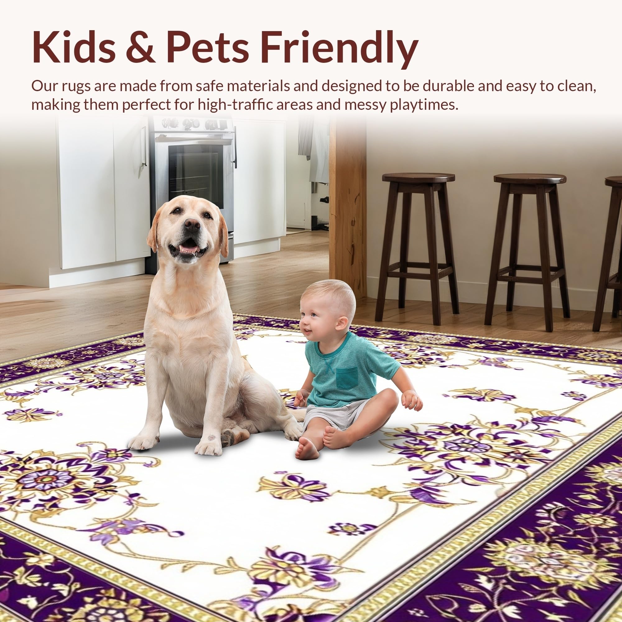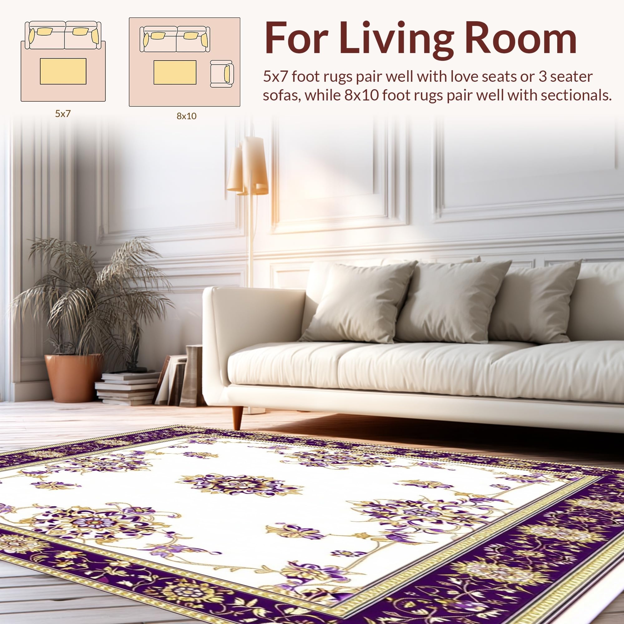 Ultra Soft Area Rug, Non Slip, Stain Resistant, Washable Area Rugs for Living Room, Bedroom, Abstract Loom Floral Area(White) Overview: