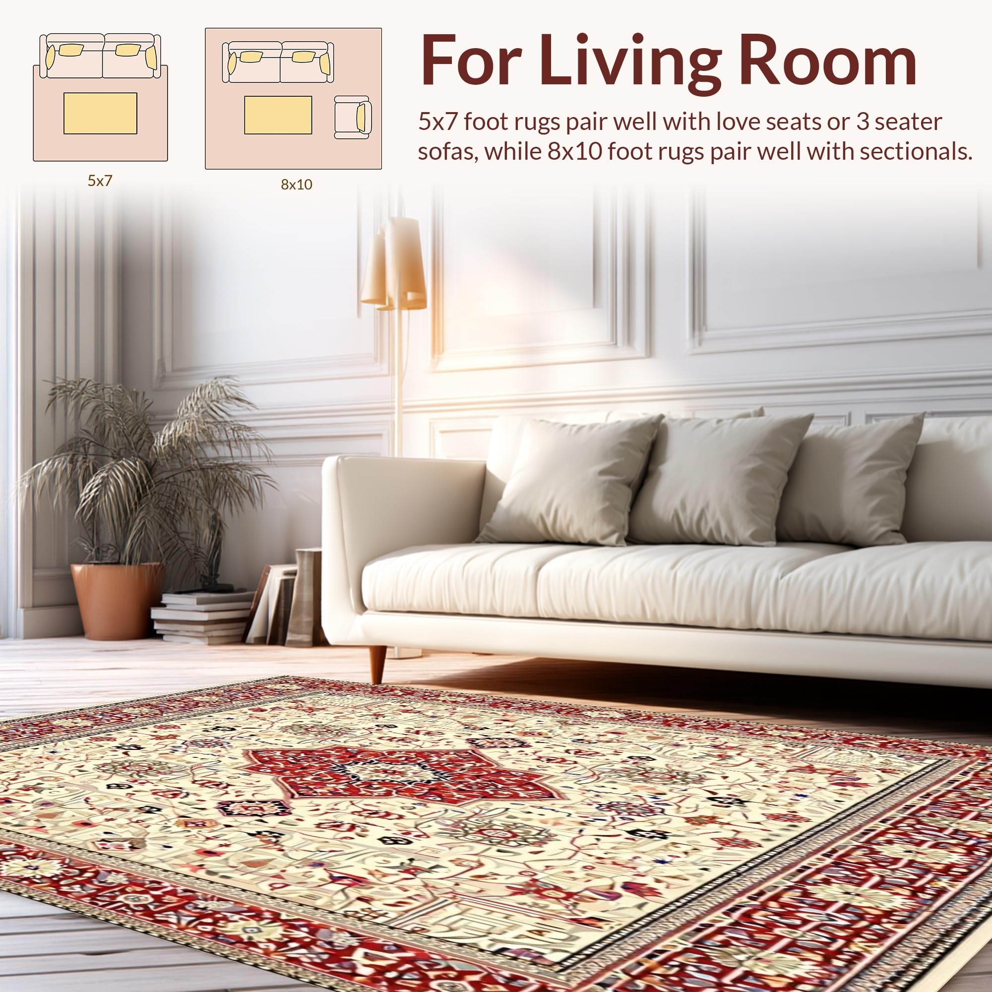 Ultra Soft Area Rug, Non Slip, Stain Resistant, Washable Area Rugs for Living Room, Bedroom, Abstract Medallion Area Non Skid Pet Friendly Easy Care(Beige) Overview: