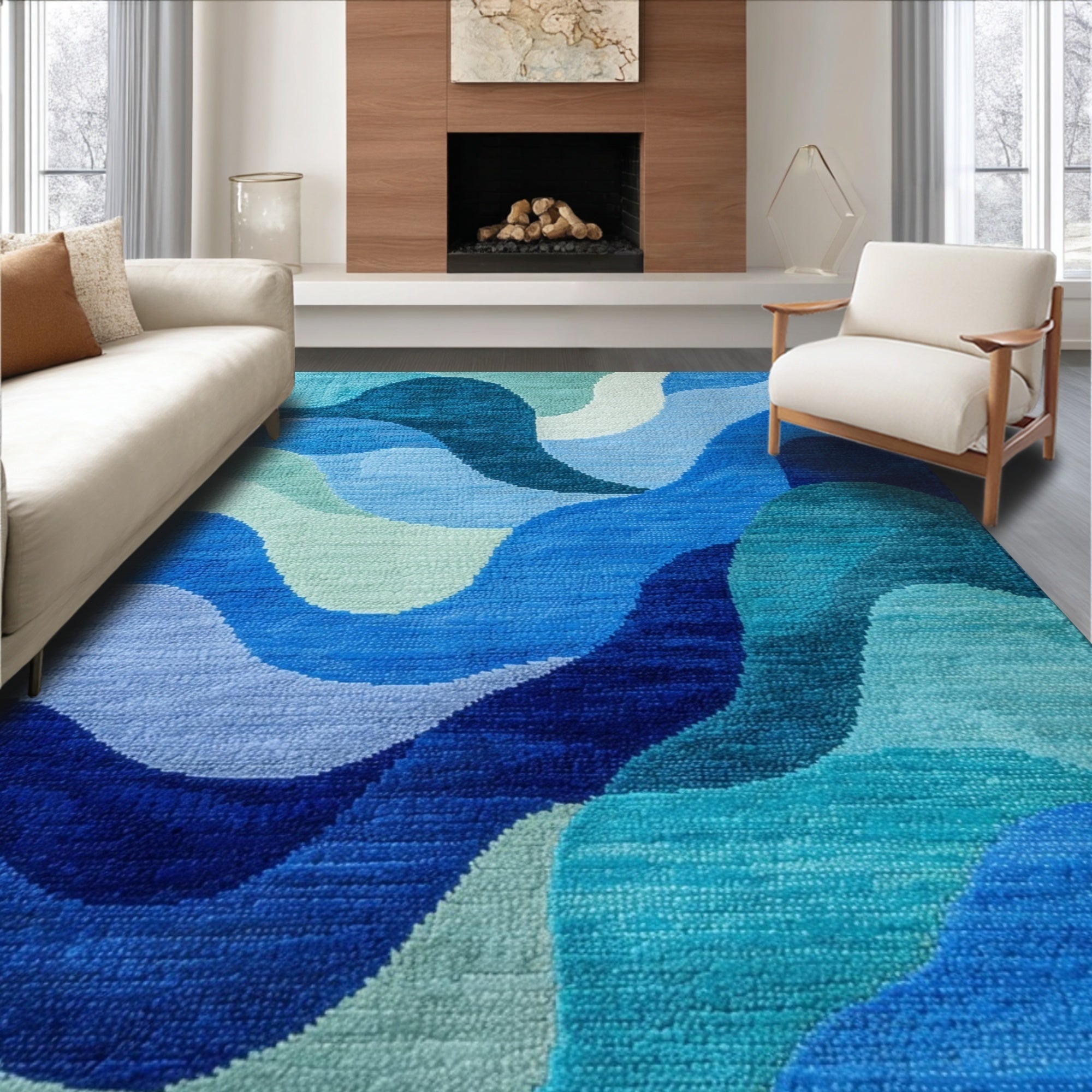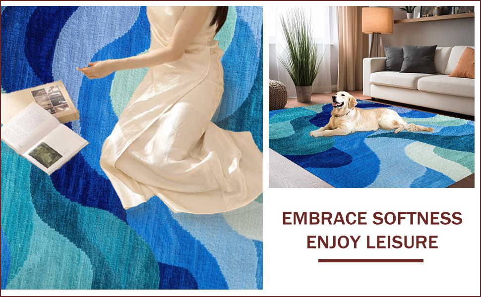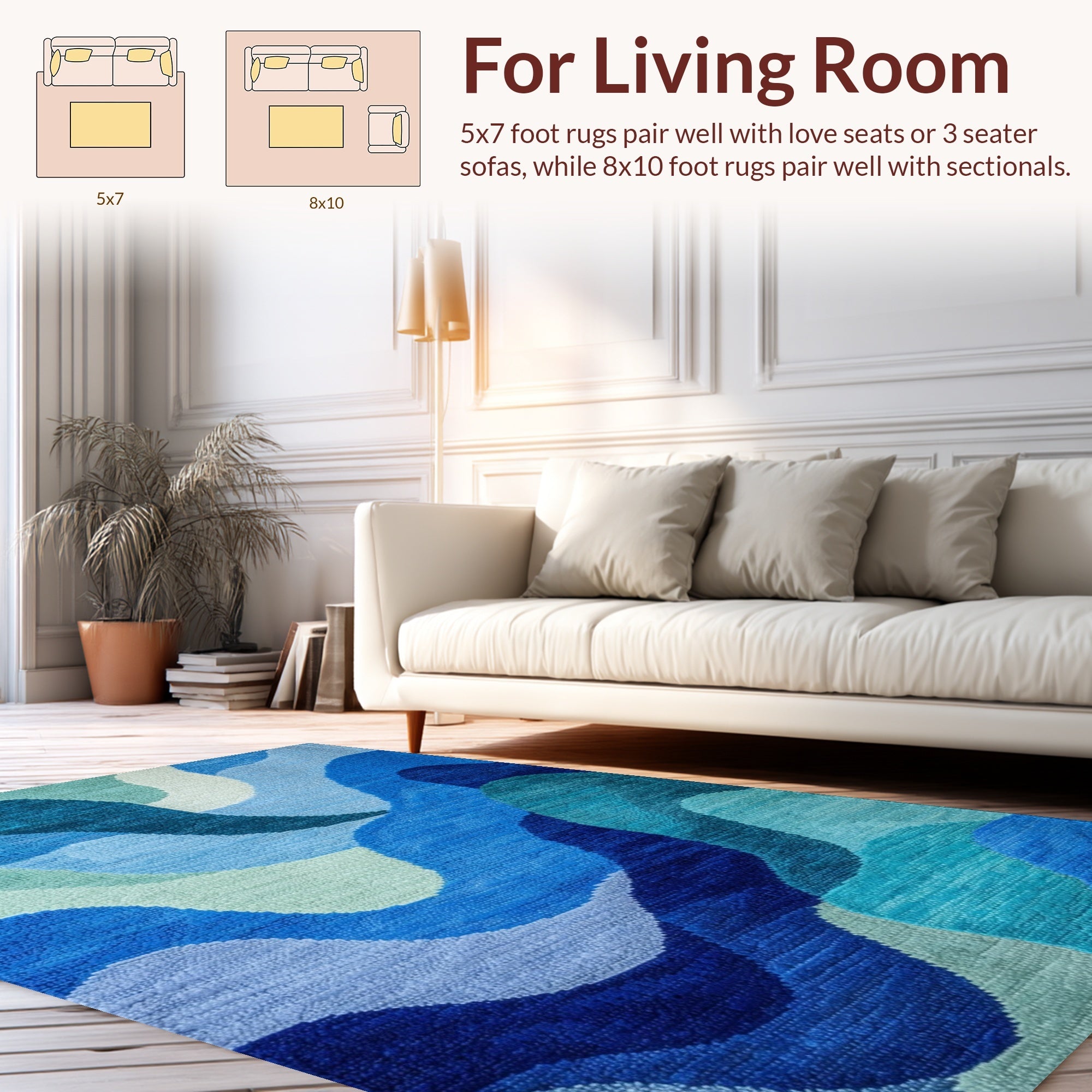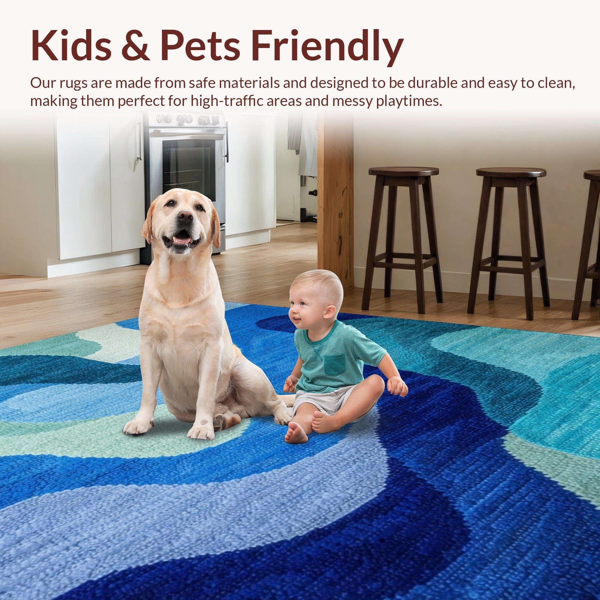 Ultra Soft Area Rug, Non Slip, Stain Resistant, Washable Area Rugs for Living Room, Bedroom, Abstract Modern Living Room Rug(Blue) Overview: