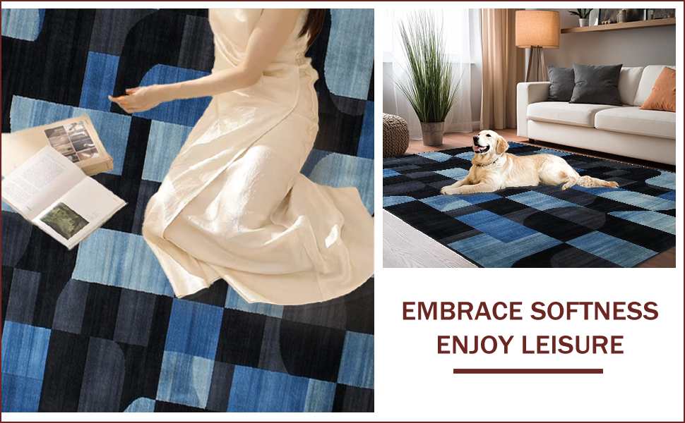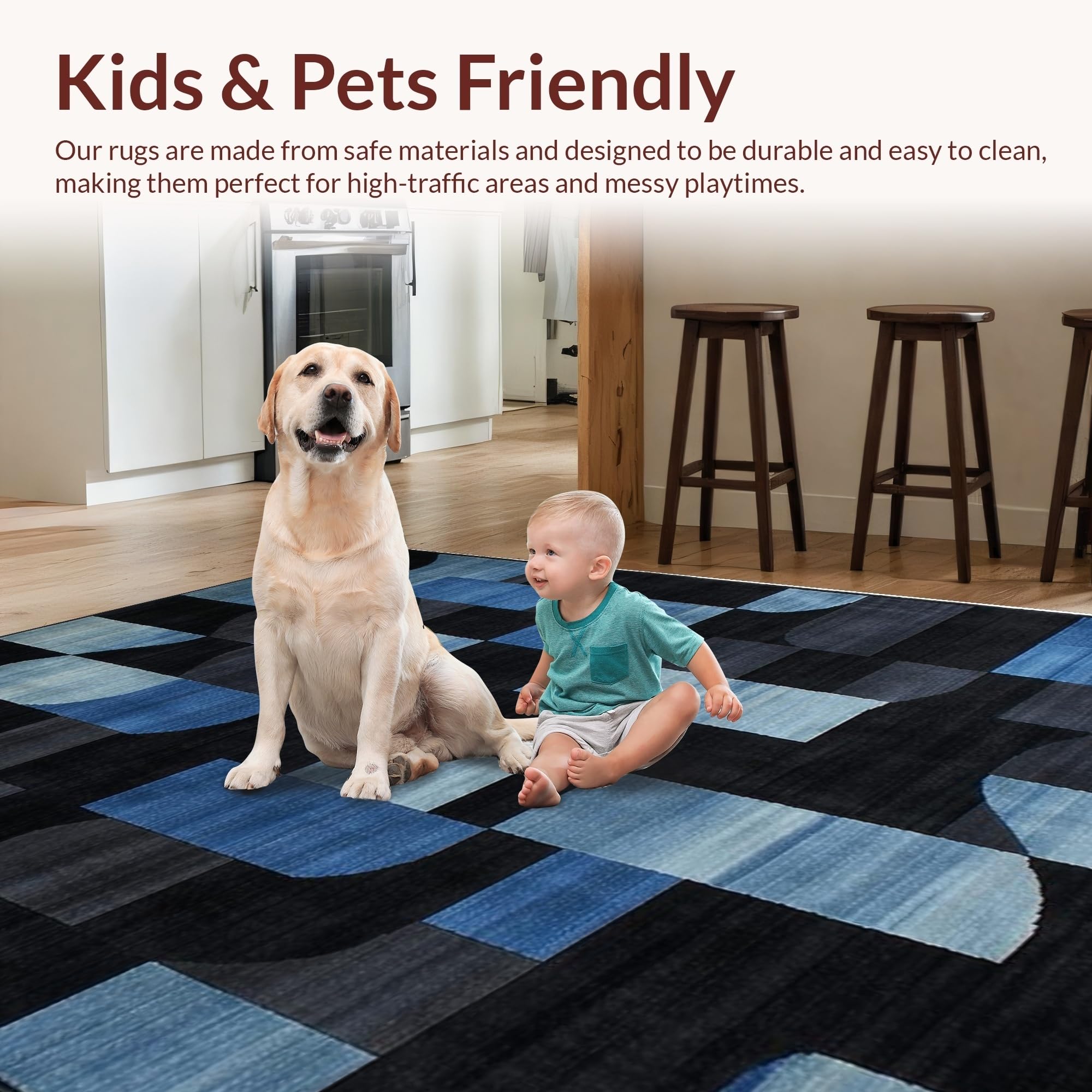 Ultra Soft Area Rug, Non Slip, Stain Resistant, Washable Area Rugs for Living Room, Bedroom, Abstract Monochrome Artful Design(Blue) Overview: