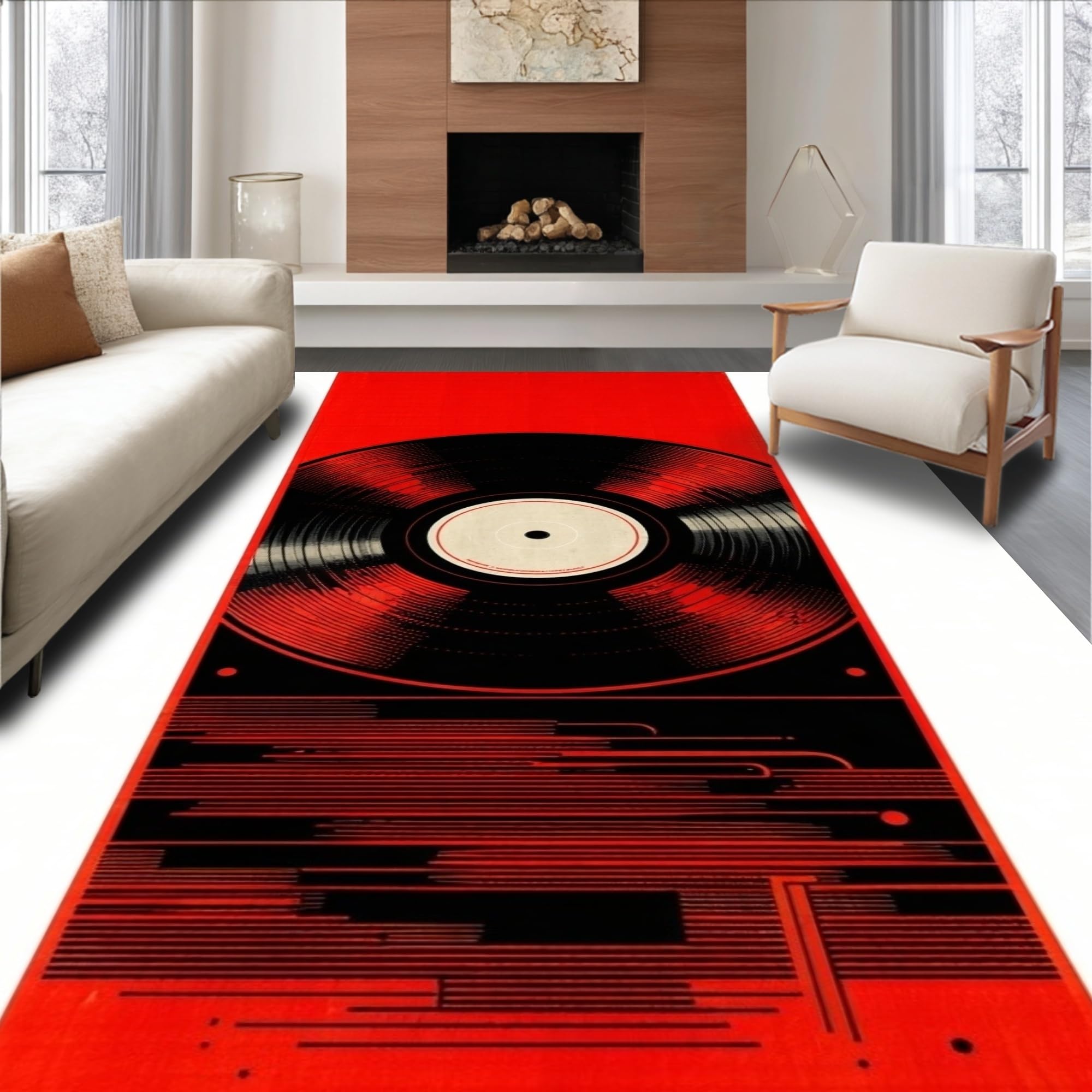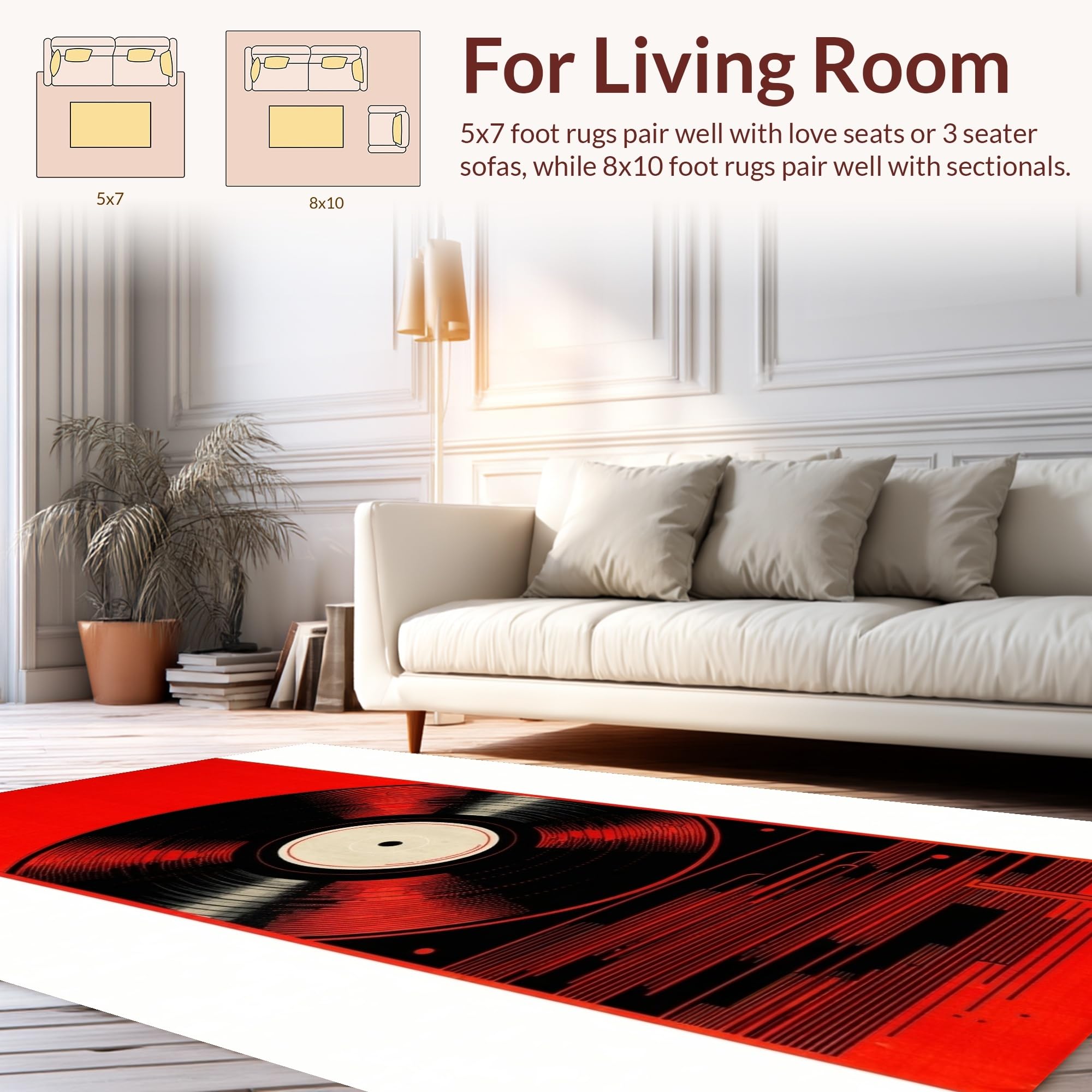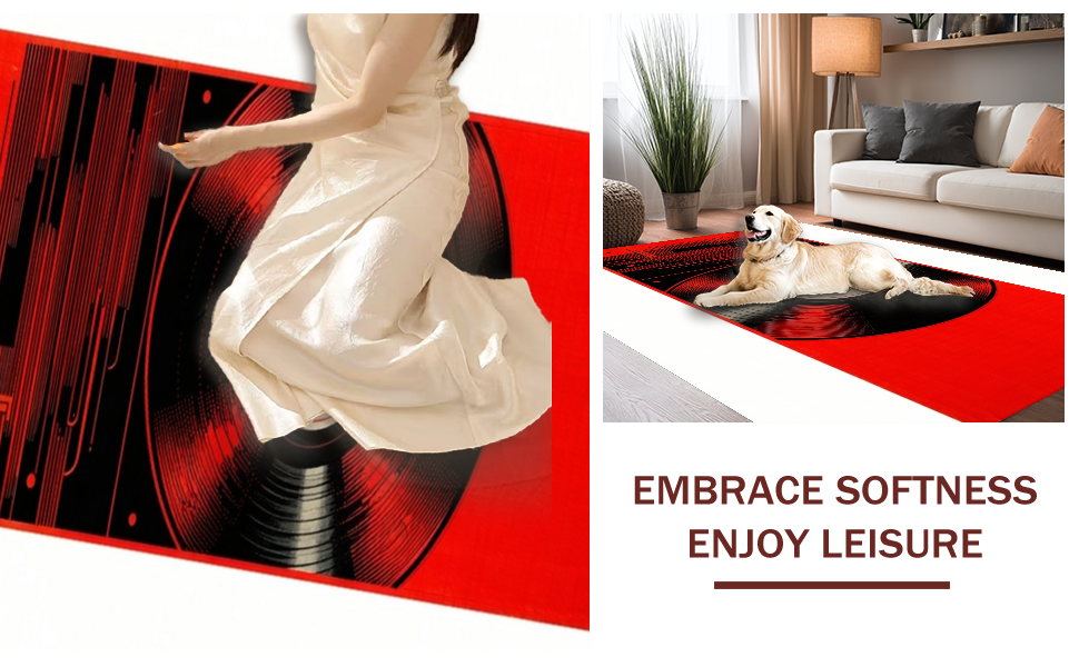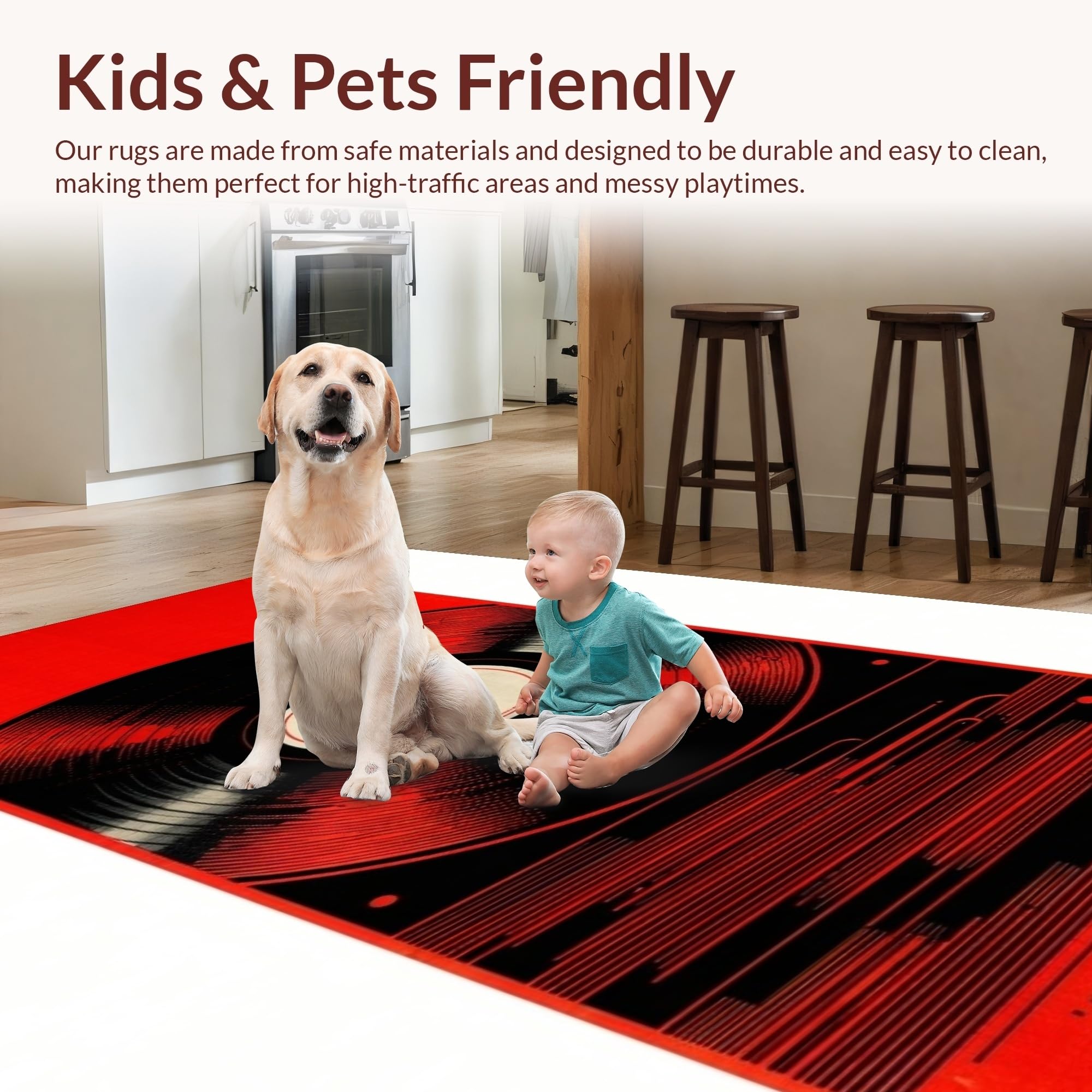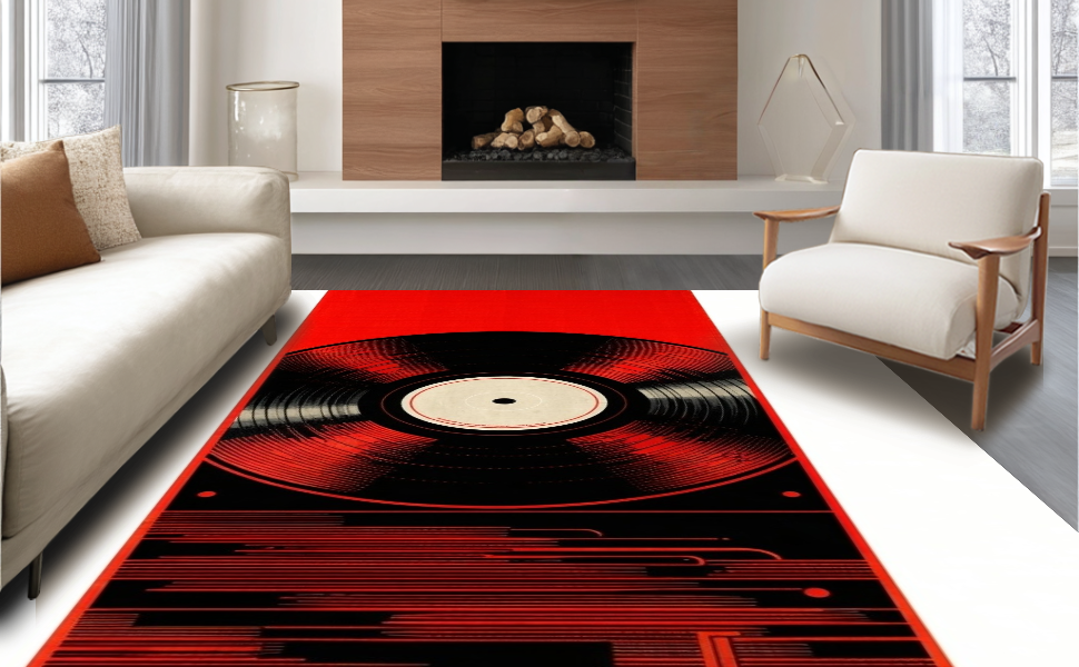 Ultra Soft Area Rug, Non Slip, Stain Resistant, Washable Area Rugs for Living Room, Bedroom, Abstract Monochrome Circular Design(Red) Overview: