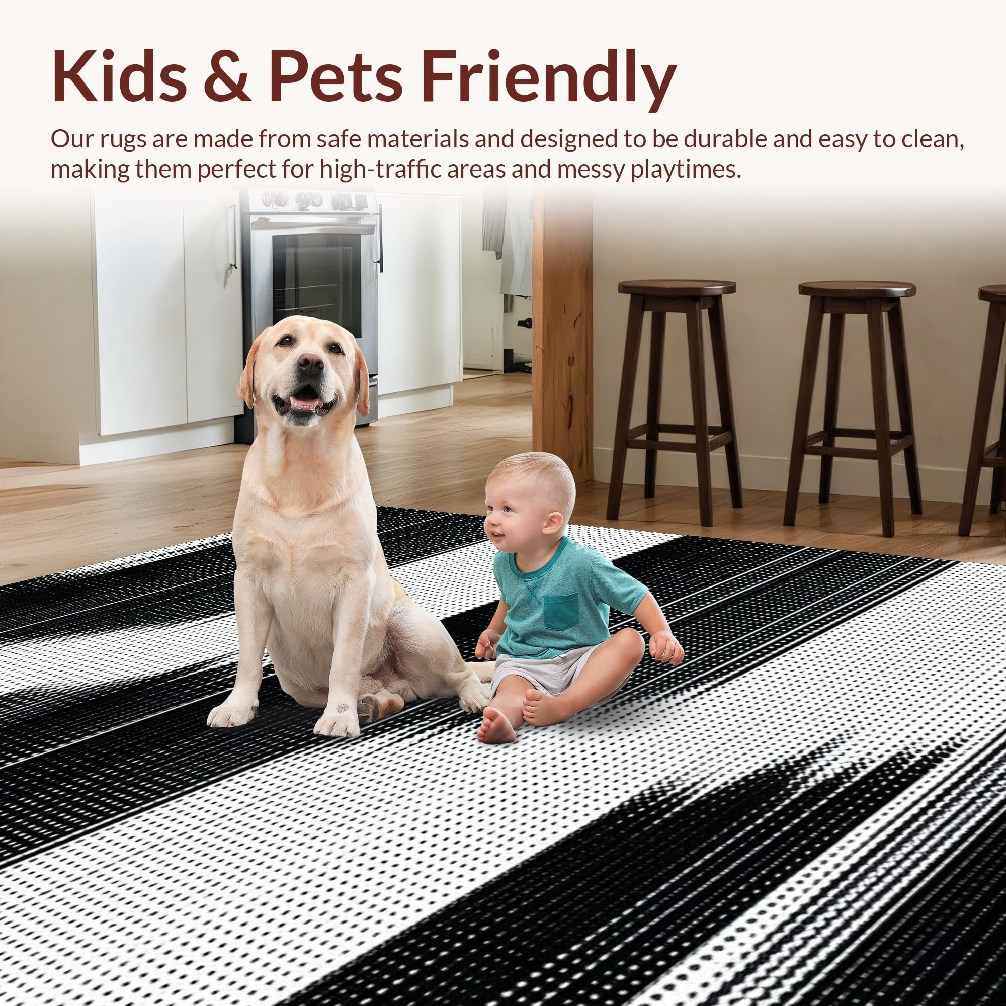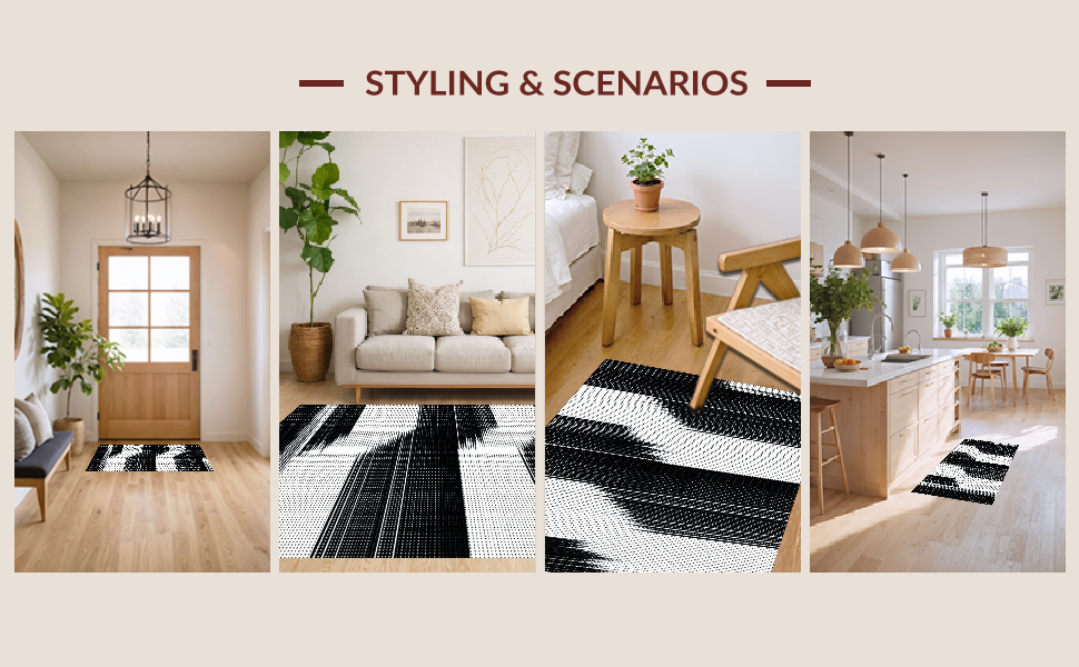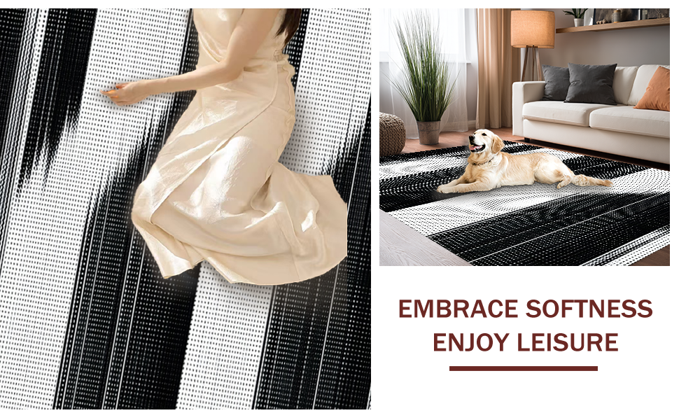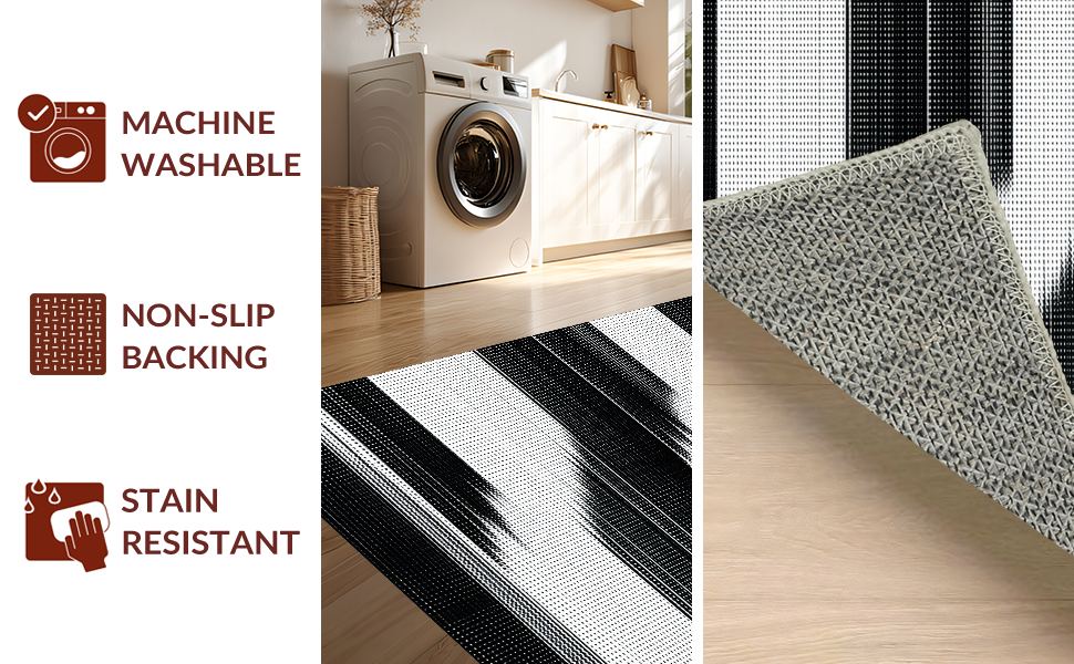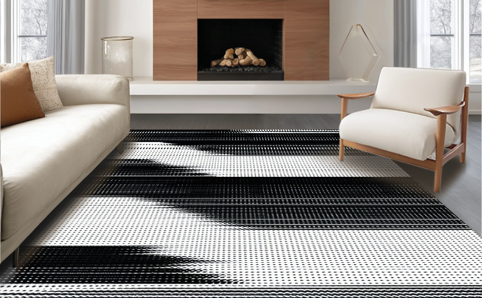 Ultra Soft Area Rug, Non Slip, Stain Resistant, Washable Area Rugs for Living Room, Bedroom, Abstract Monochrome Geometric Aesthetic(Black) Overview: