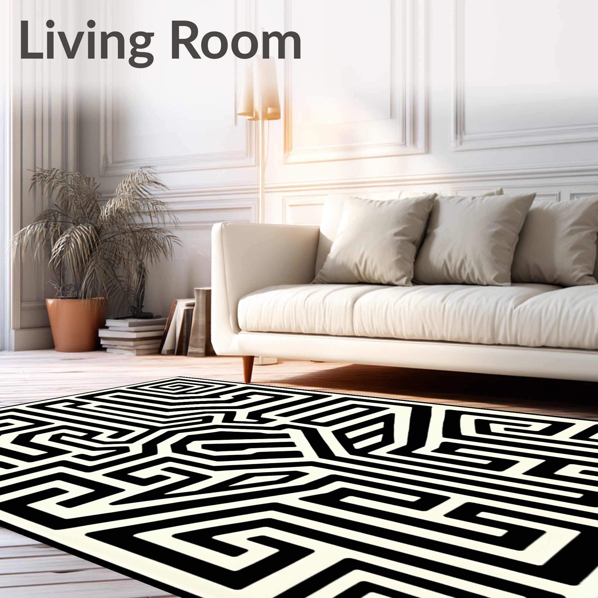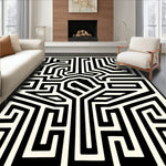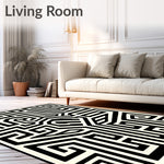 Ultra Soft Area Rug, Non Slip, Stain Resistant, Washable Area Rugs for Living Room, Bedroom, Abstract Monochrome Maze with Asymmetrical Interlocking Paths(Black) Overview: