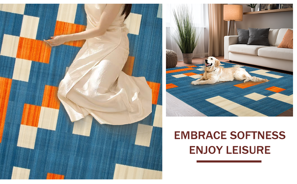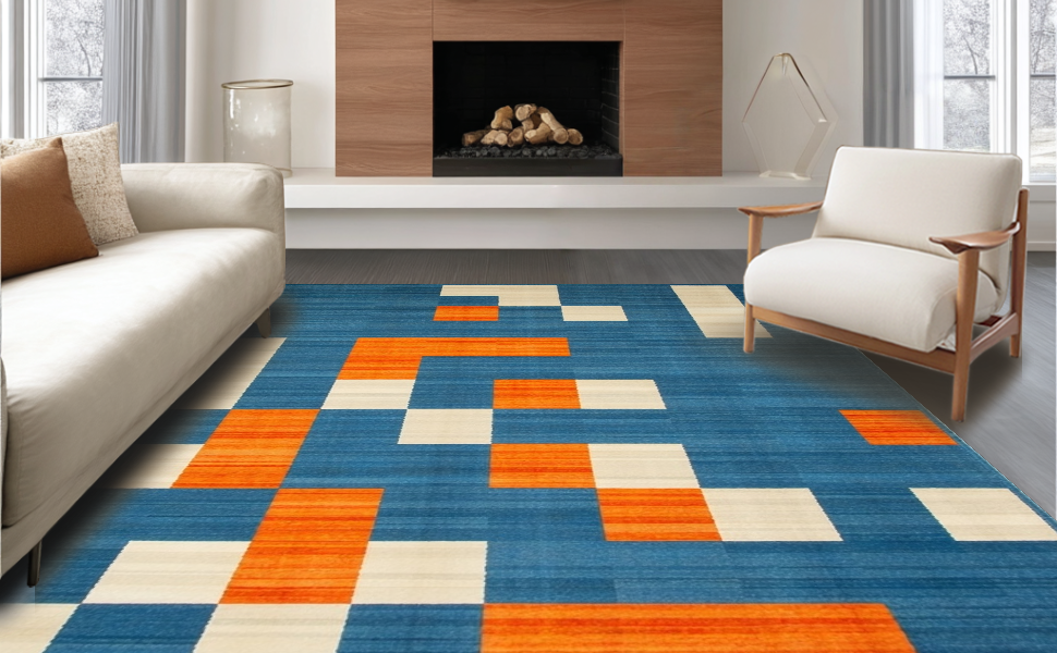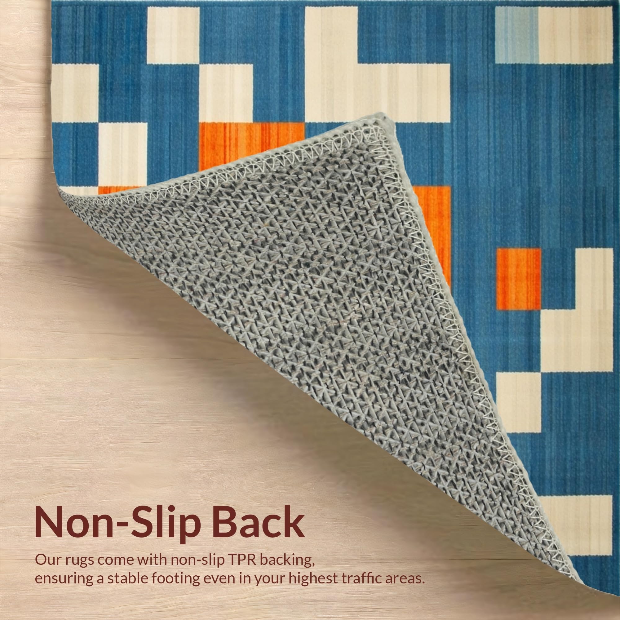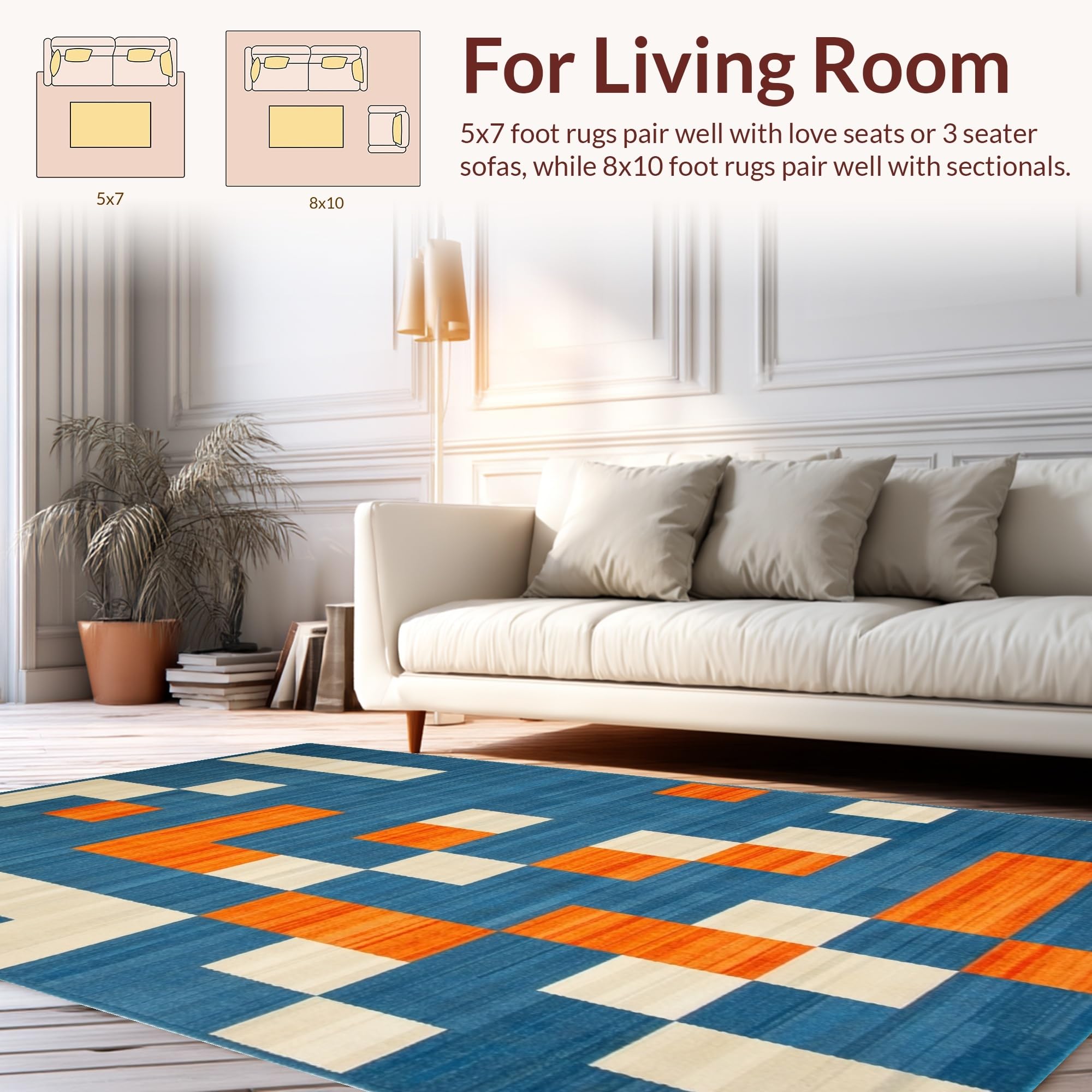Ultra Soft Area Rug, Non Slip, Stain Resistant, Washable Area Rugs for Living Room, Bedroom, Abstract Multicolor Patterned Elegance(Blue) Overview: