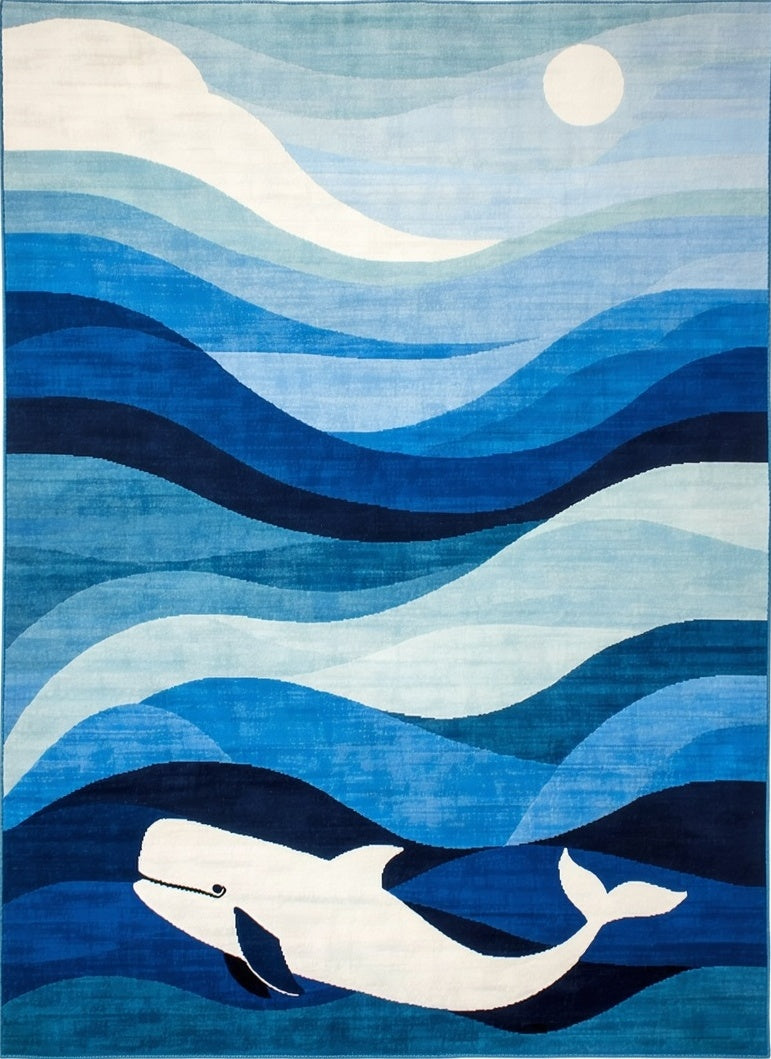 Ultra Soft Area Rug, Non Slip, Stain Resistant, Washable Area Rugs for Living Room, Bedroom, Abstract Ocean Whale Runner Rug(Blue) Overview:
