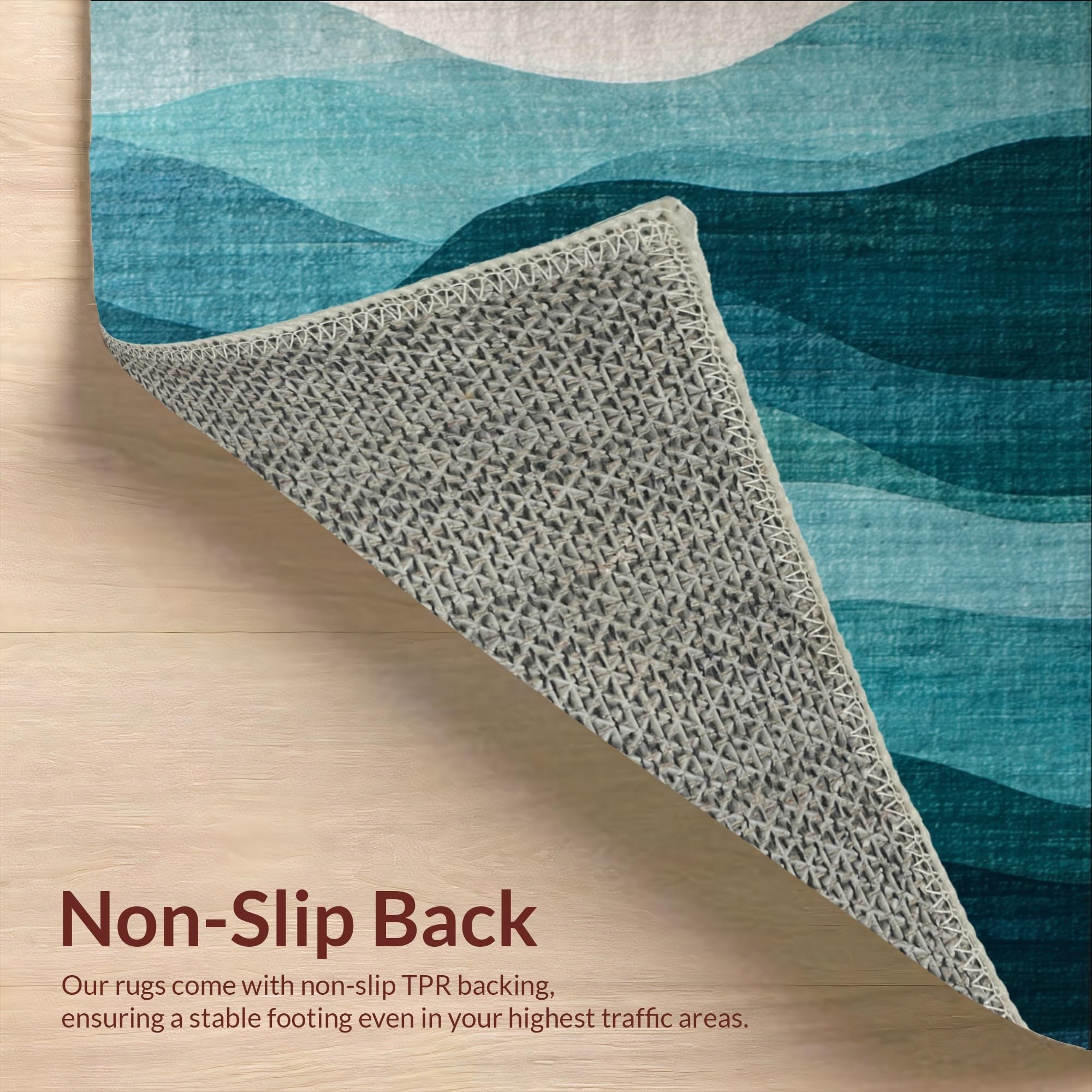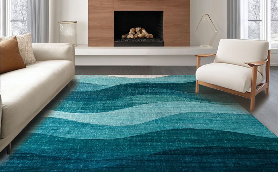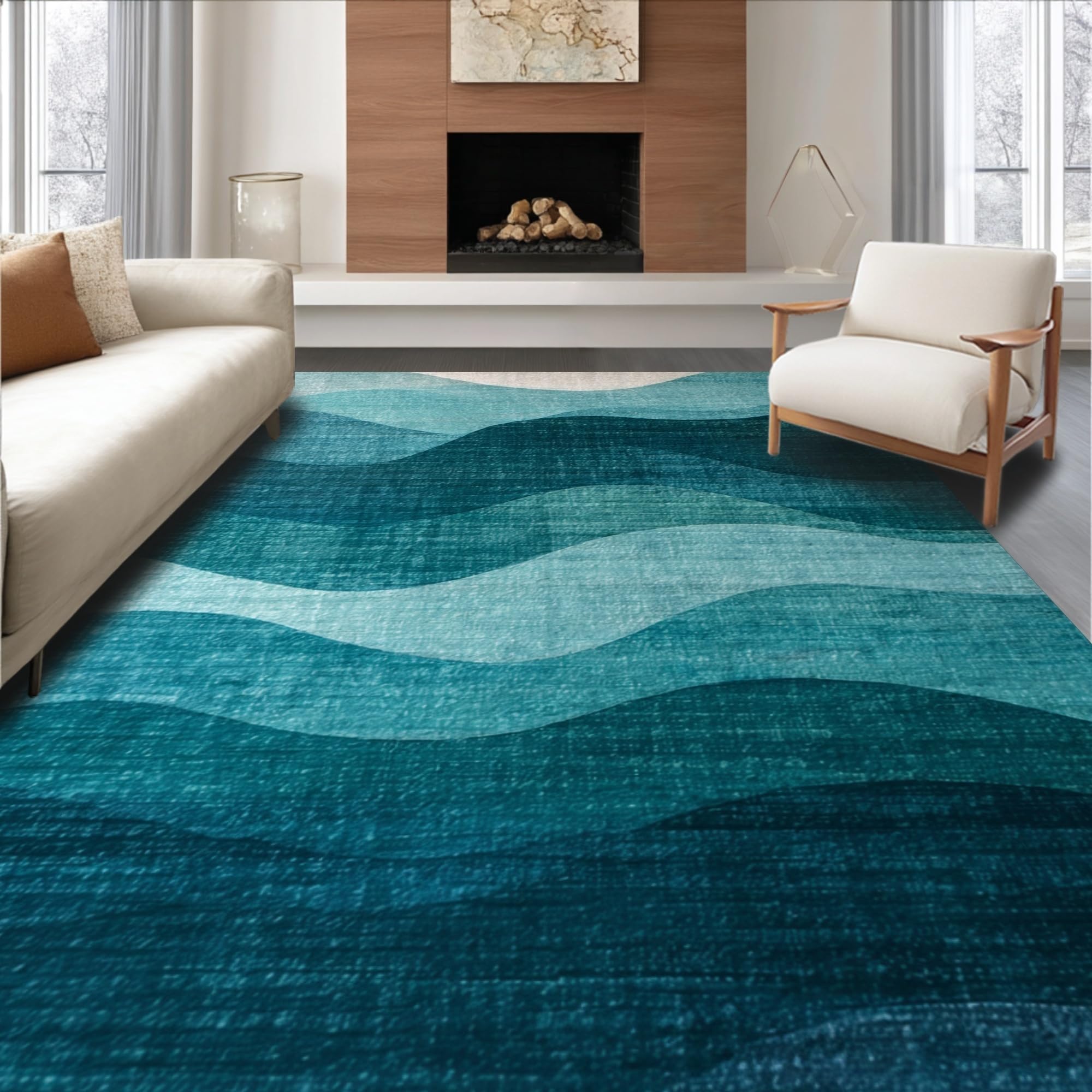Ultra Soft Area Rug, Non Slip, Stain Resistant, Washable Area Rugs for Living Room, Bedroom, Abstract Ombre Design Round Rug Featuring Striking Shades of Teal and Blue(Blue) Overview: