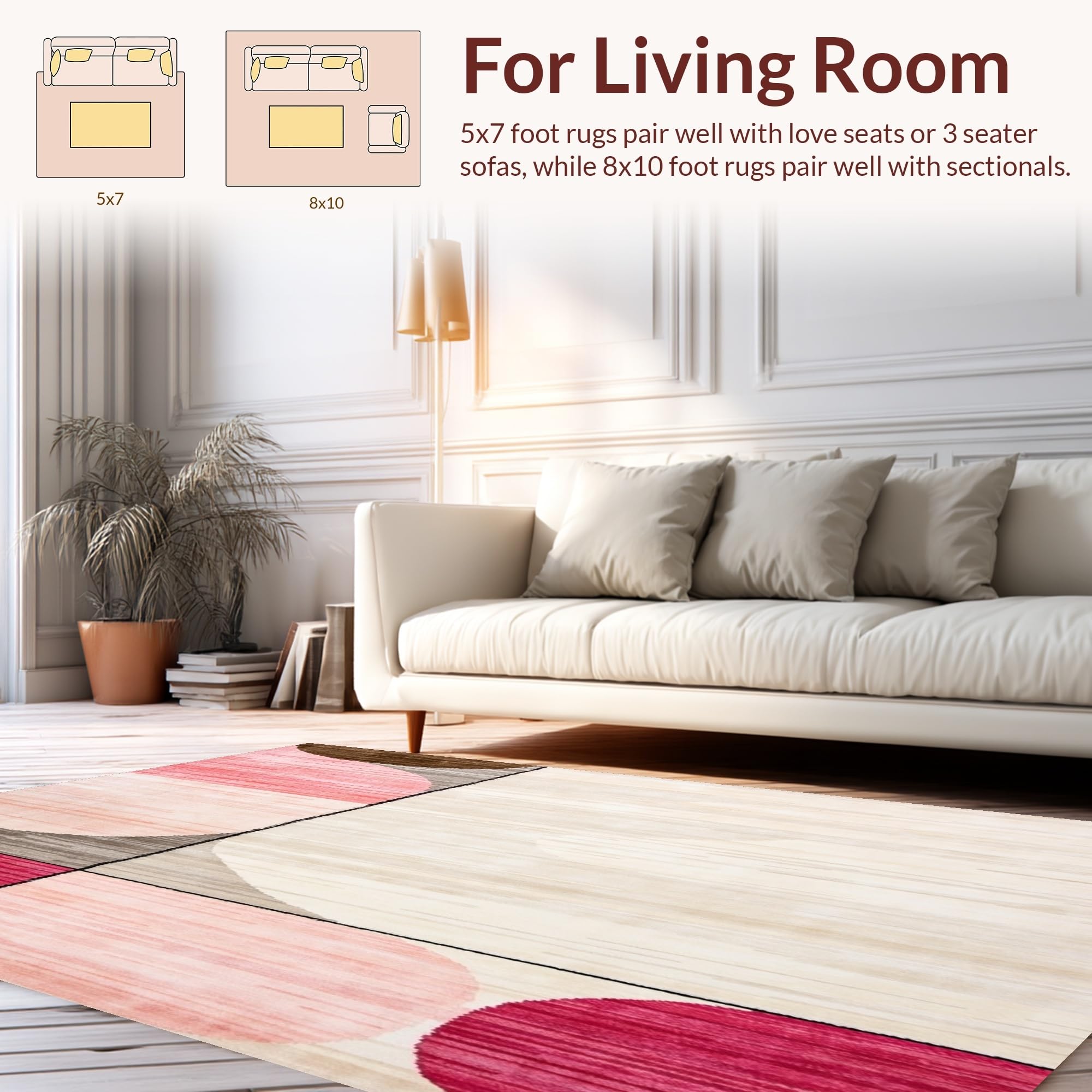 Ultra Soft Area Rug, Non Slip, Stain Resistant, Washable Area Rugs for Living Room, Bedroom, Abstract Pink and Brown Cowhide Artistic Animal Inspired Design(Pink) Overview: