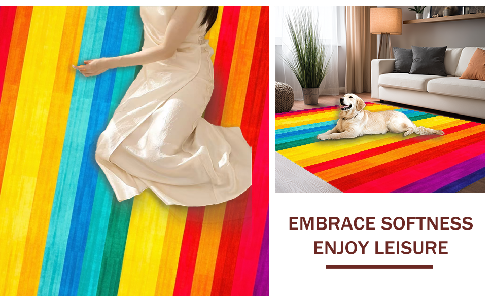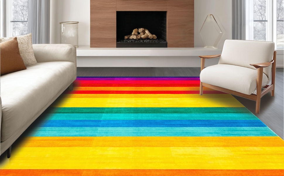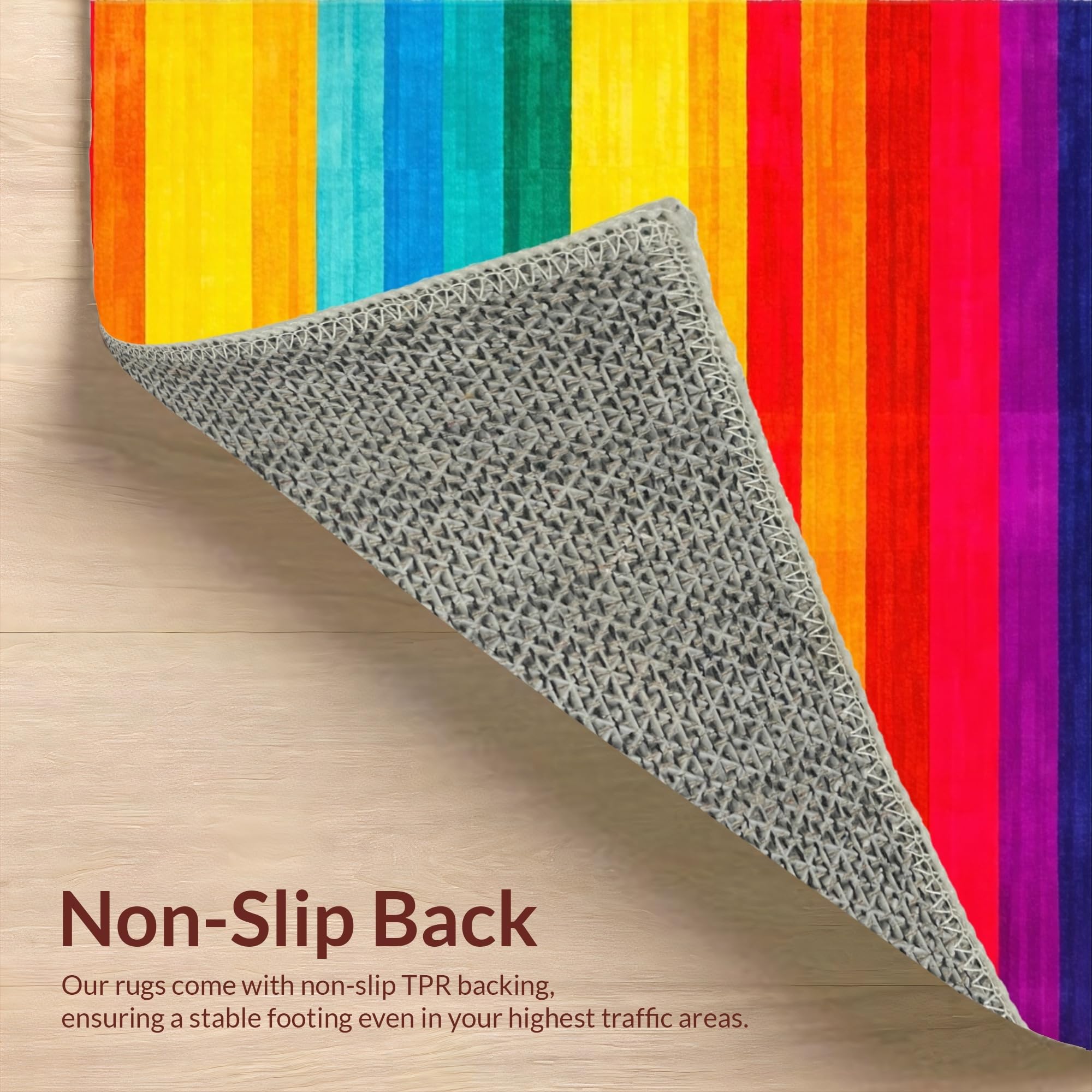 Ultra Soft Area Rug, Non Slip, Stain Resistant, Washable Area Rugs for Living Room, Bedroom, Abstract Rainbow Tiled Design(Red) Overview:
